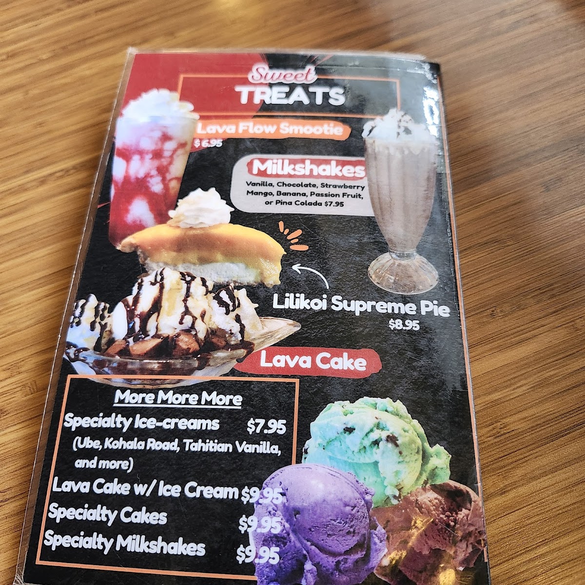 White rice topped with two hamburger patties, grilled onions, two eggs and brown gravy… ono!