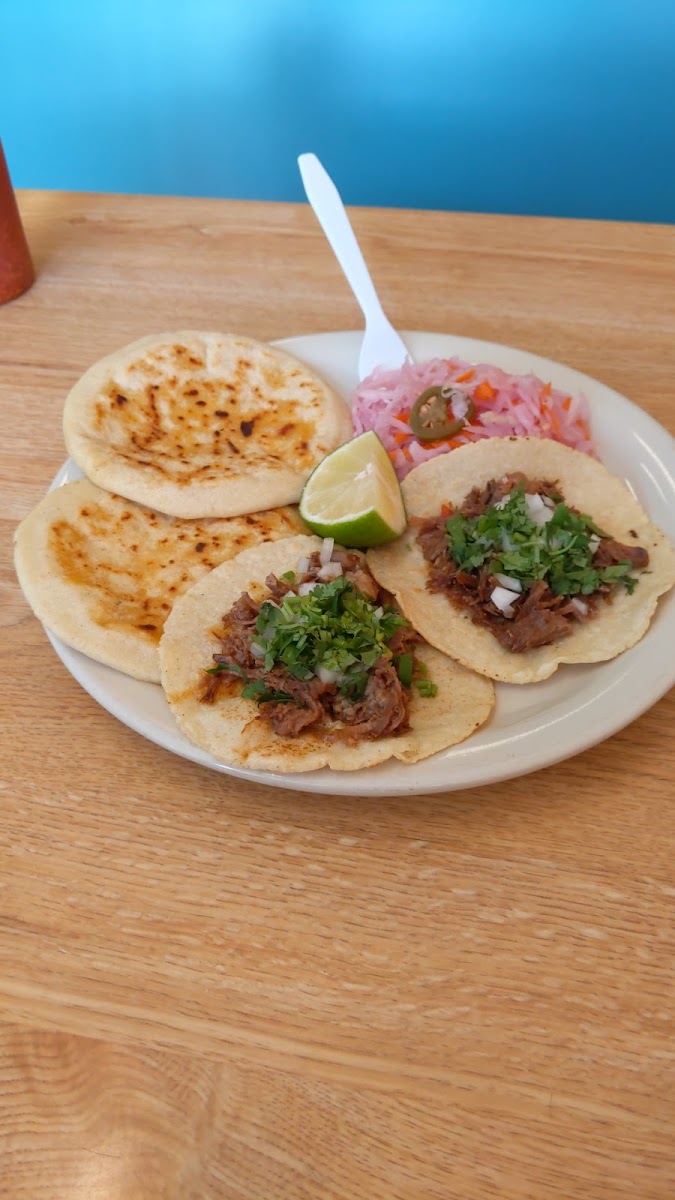 Not everybody speaks English and most of the menus are in Spanish, but the food is excellent!! Nice little hole in a wall place, we liked it! Pupusa with Loroco and cheese was really good. The chicken portion is generous and it comes with hot tortillas. The tacos were good too!
