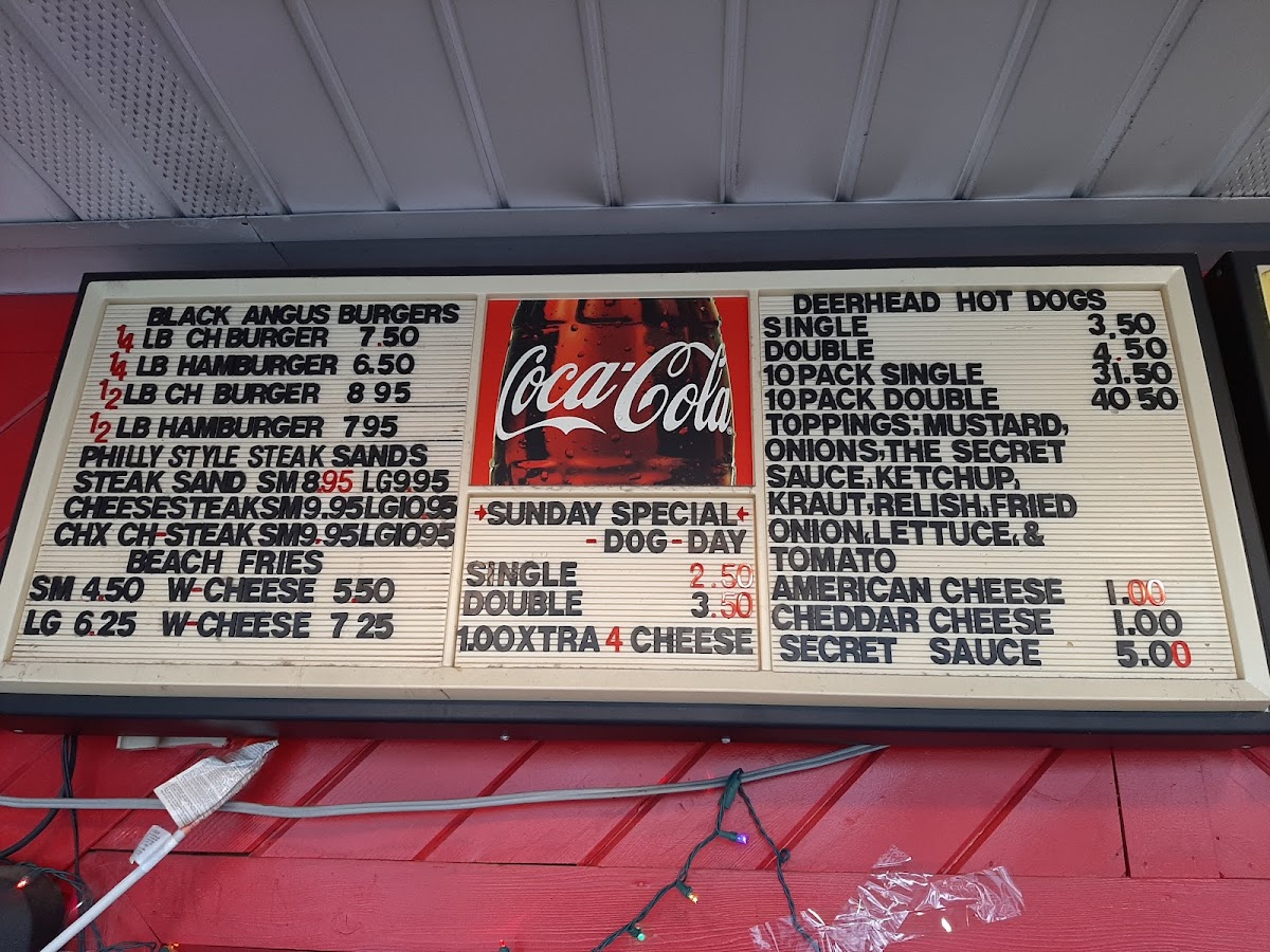 The Deerhead Hot Dog. The Deerhead Hot Dog with Everything is: Mustard, Onions, and our Secret Sauce!