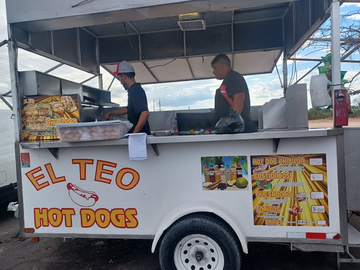 El Teo Hot Dogs is located at 3055 E Irvington Rd, Tucson, AZ 85714, United States, and operates as a Hot Dog Restaurant. It has received a total of 56 user reviews. On Mondays and Tuesdays, there can be peak wait times of up to 15 minutes during lunch hours, specifically from 1:00 PM to 2:30 PM on Monday and 11:00 AM to 2:30 PM on Tuesday, while the rest of the week tends to have no wait. The restaurant specializes in hot dogs, which are their featured dish, making it a straightforward yet popular spot for those craving this classic item.
