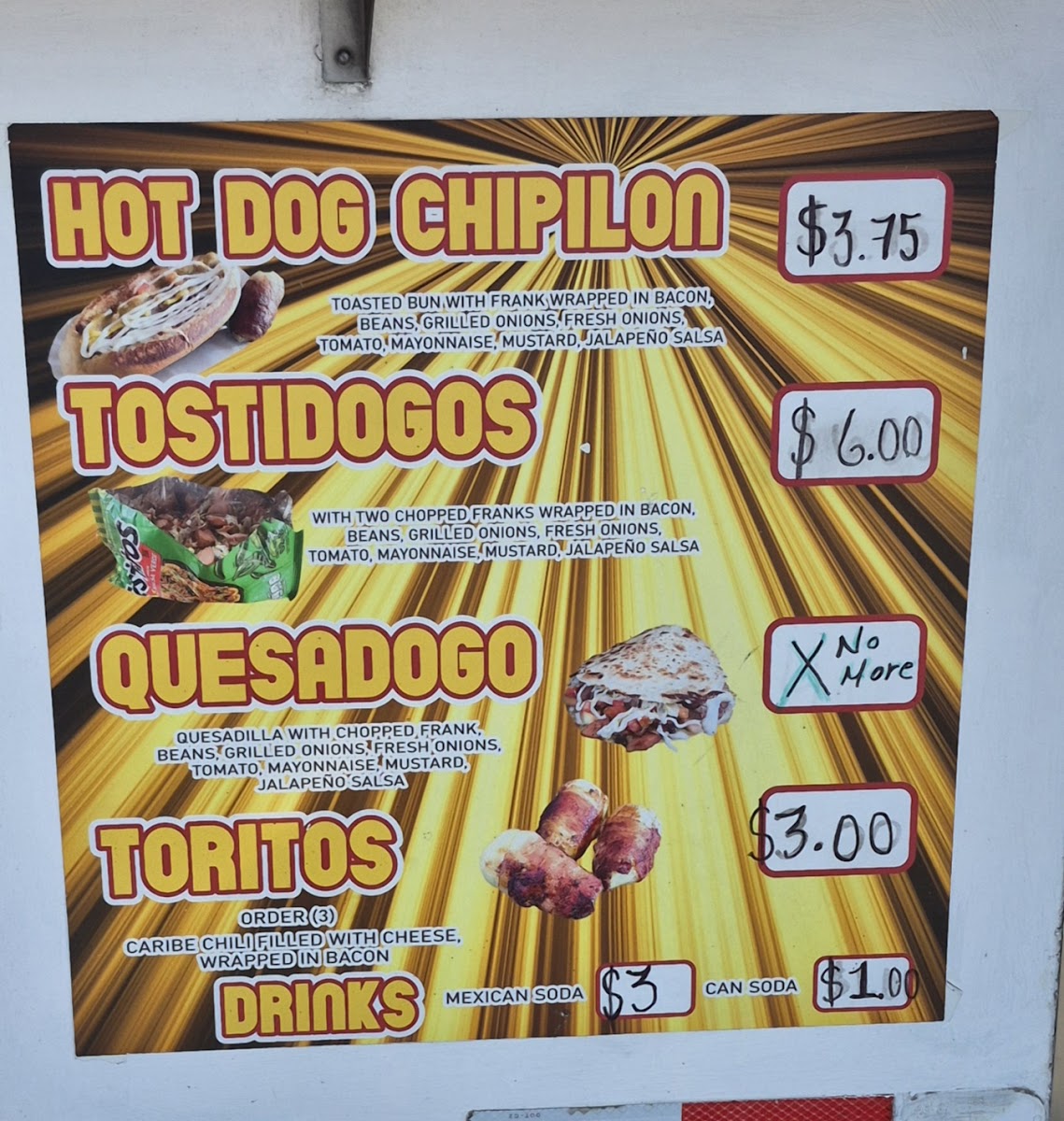 El Teo Hot Dogs Menu