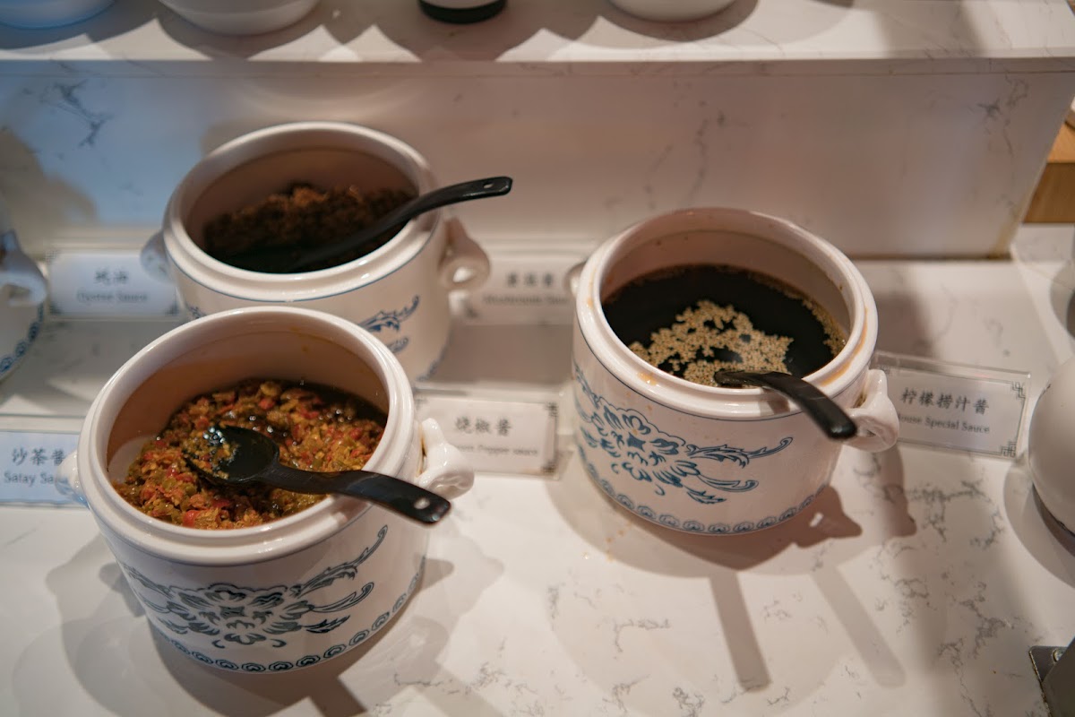 This hotpot place has some good quality meats and broth. The pricing is decent too for what you get. We got the bone broth and spicy. Both were very good and the selection was diverse. The veggies were excellent, especially the corn, napa cabbage and the lotus root. The meats were also great. The ribeye, short rib, shrimp paste with roe and pepper corn beef were great. The lamb and beef belly were also good. The sauce station is very simple and constantly restocked. The staff is very attentive and constantly looking to grab empty trays and deliver orders in a very quick timely manner. The decor is very neat and cultural relevant to the Chinese food.