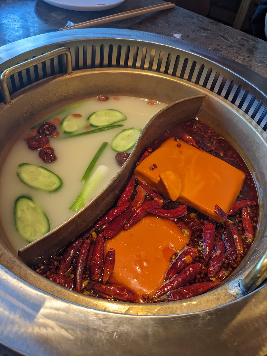 If you have never done hotpot before, make sure you come with someone who knows. They are not good at explaining or helping out. I would recommend to come with 4 people at least, this way you can order to share more things (meat, fish, vegetables, whatever you like). I had the gold broth (chicken soup broth) and their original broth (spicy level 1). It felt very spicy to me but I usually like mild. So it makes sense.