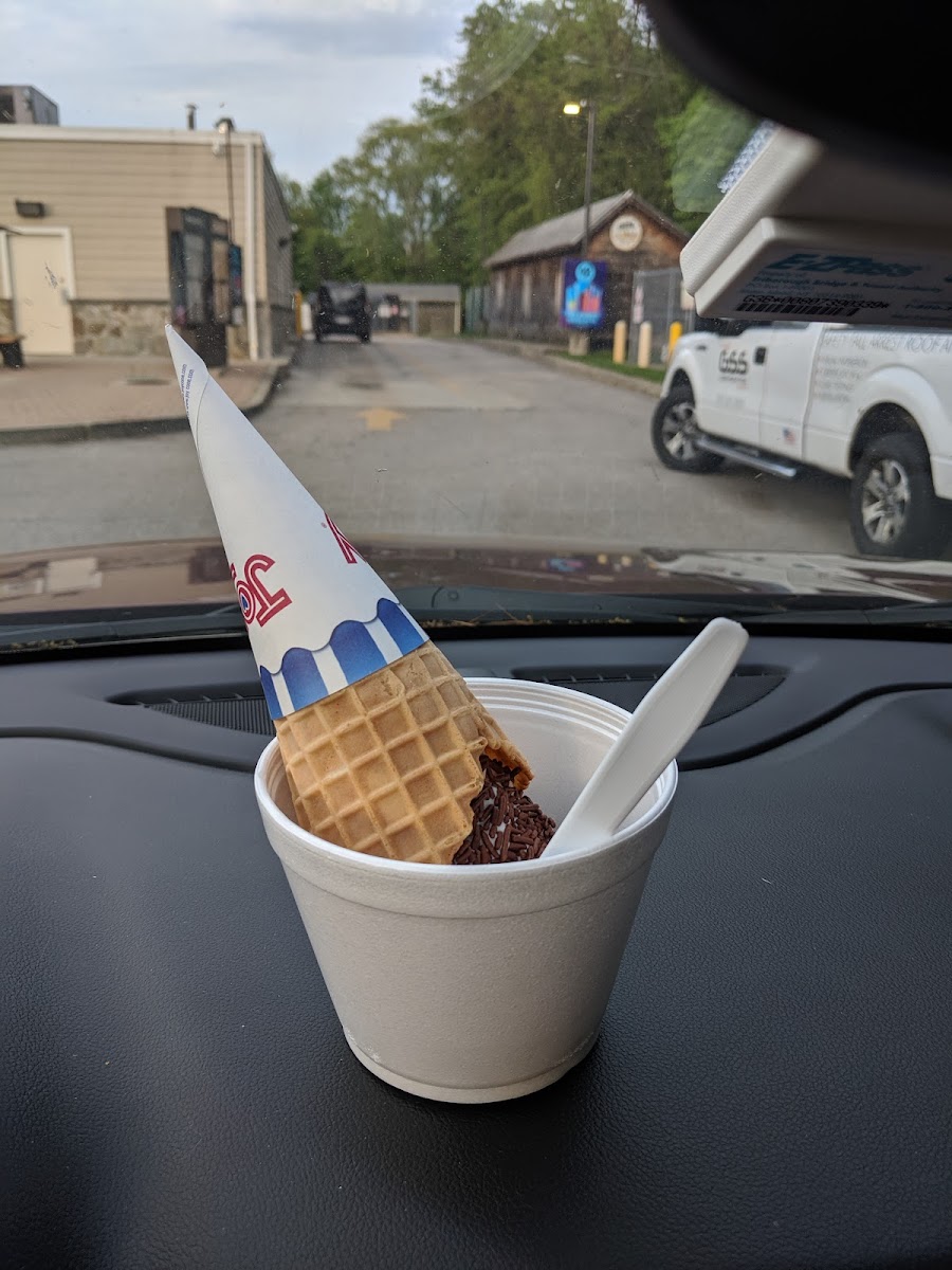 Good ice cream. Serving size varies depending on the server. Occasionally ice crystals in some flavors. Decent variety. If you have kids be careful walking to the window as the dunkin traffic is not very forgiving.
