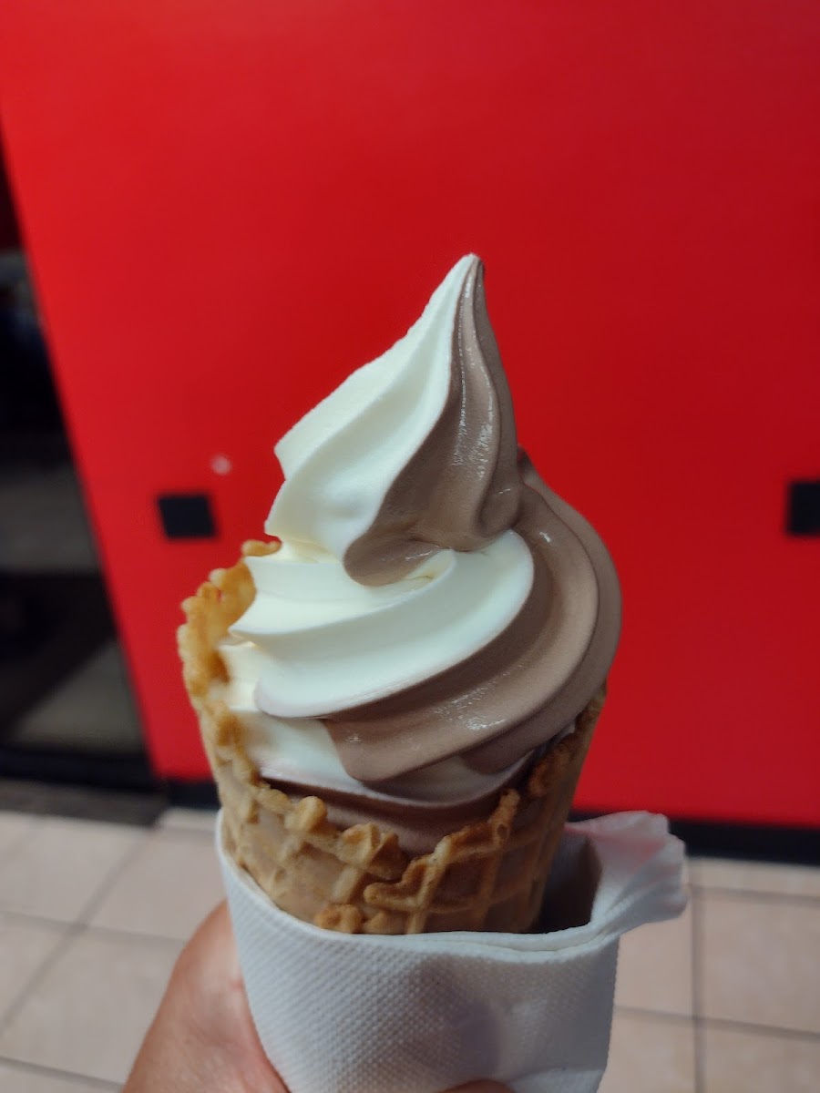 Five stars for the delicious thick and smooth swirl ice cream in the waffle cone! Also, for the Bible Verse on the white board. "..in everything give THANKS; for this is the WILL of God in Christ Jesus for you." 1 Thessalonians 5:18. My husband had the chocolate dipped cone and claimed it tasted better than DQ. I guess I should have tasted it. That's a big claim..