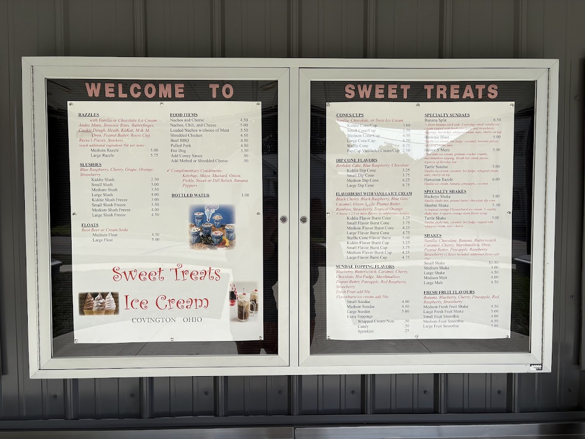 Sweet Treats is an ice cream shop situated at 224 N High St in Covington, OH. It enjoys 130 user reviews and is especially known for its Ice Cream Cone. The shop sees peak wait times of up to 15 minutes early Monday morning between midnight and 1:30 AM and again on Sunday evenings from 7:30 PM to midnight. On other days, customers report no wait times, allowing for easy visits outside these peak hours.