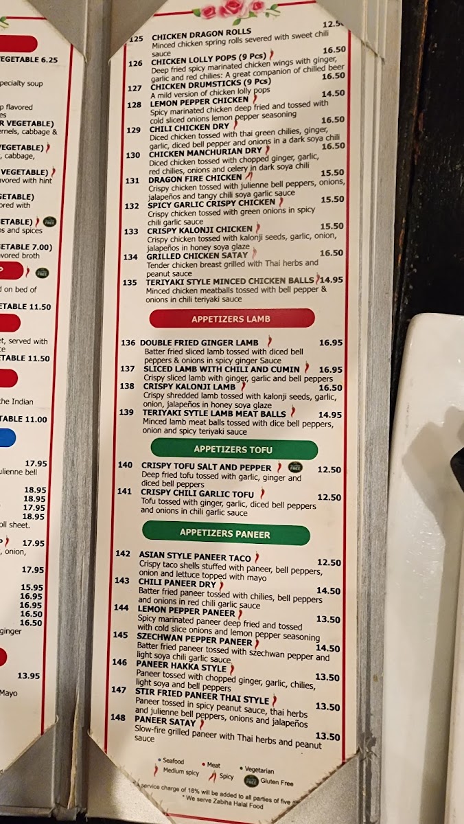 Batter fired paneer tossed with thai chili, diced bell peppers and onios in a red chili garlic sauce