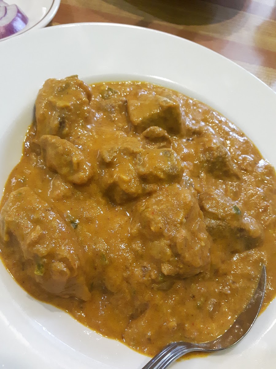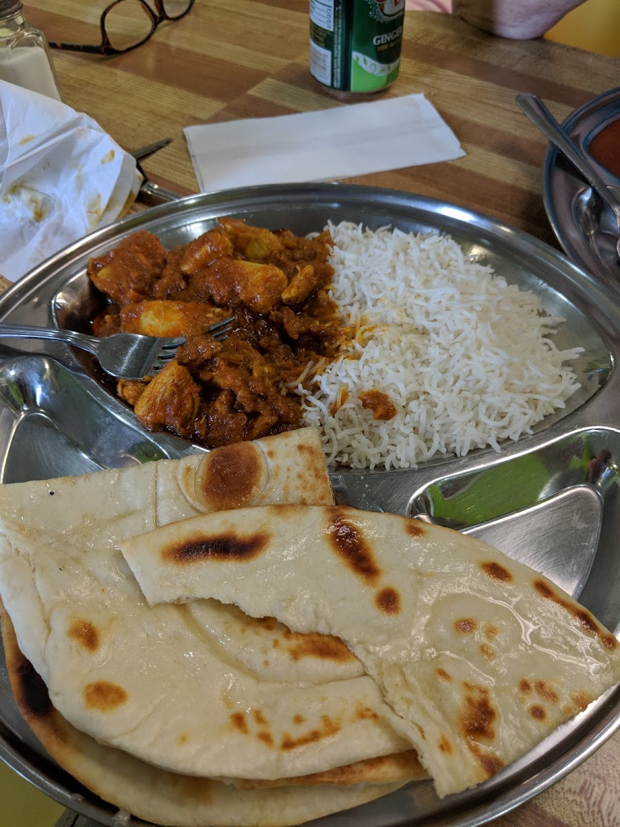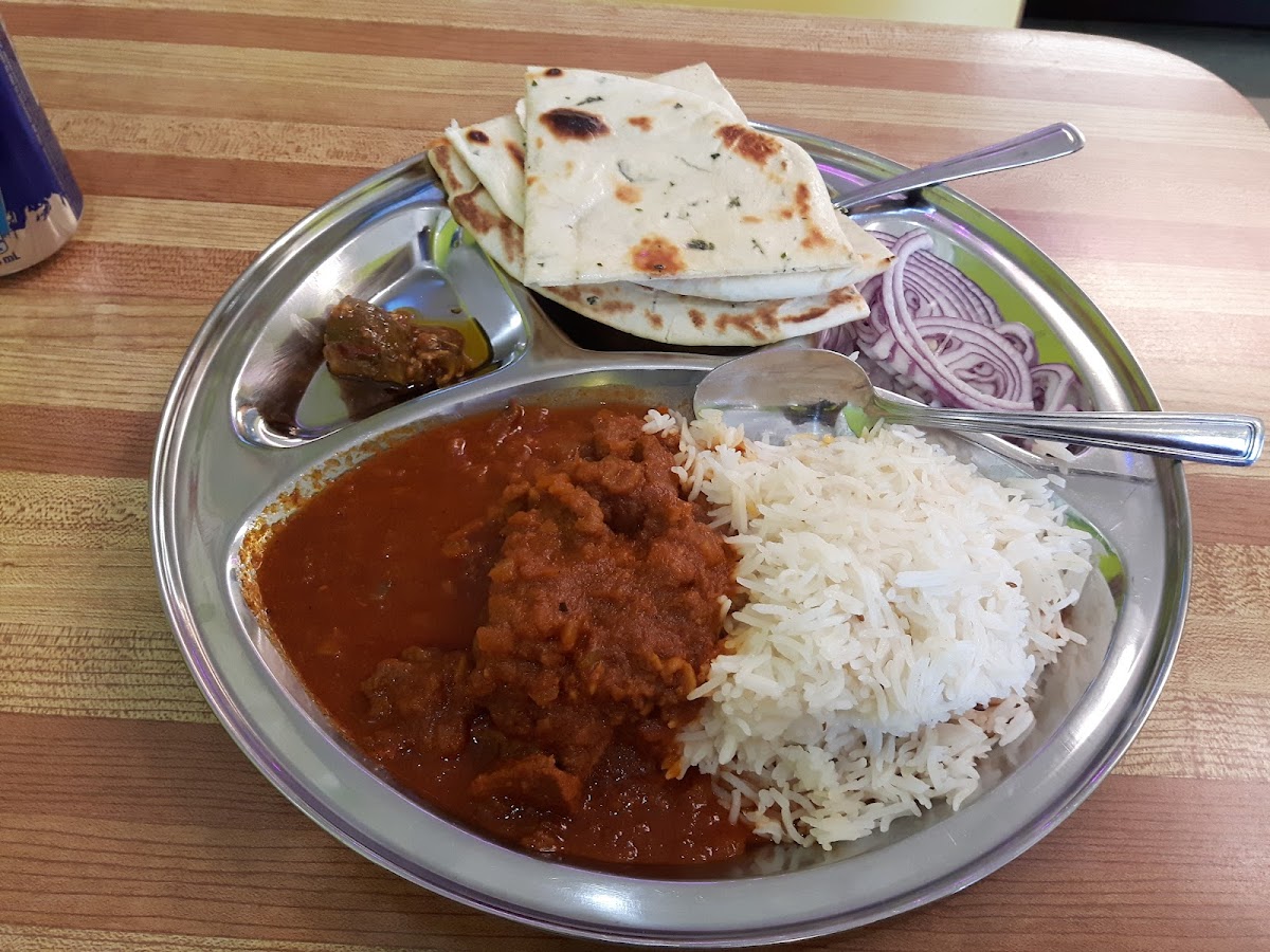 I got veggie pakora, goat curry, and garlic naan. The curry was super flavourful and tasty and the pakoras were crispy and tasty. My server was also lovely.