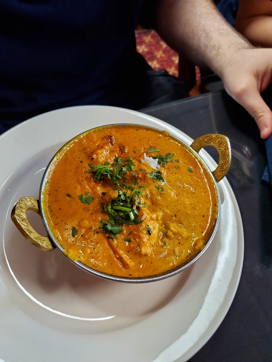 First visit! Food was very good! Love that us was served family style. Got to try both dishes. (Chicken korma and Butter chicken with garlic naan bread) They brought us rice pudding at the end. We will be back!