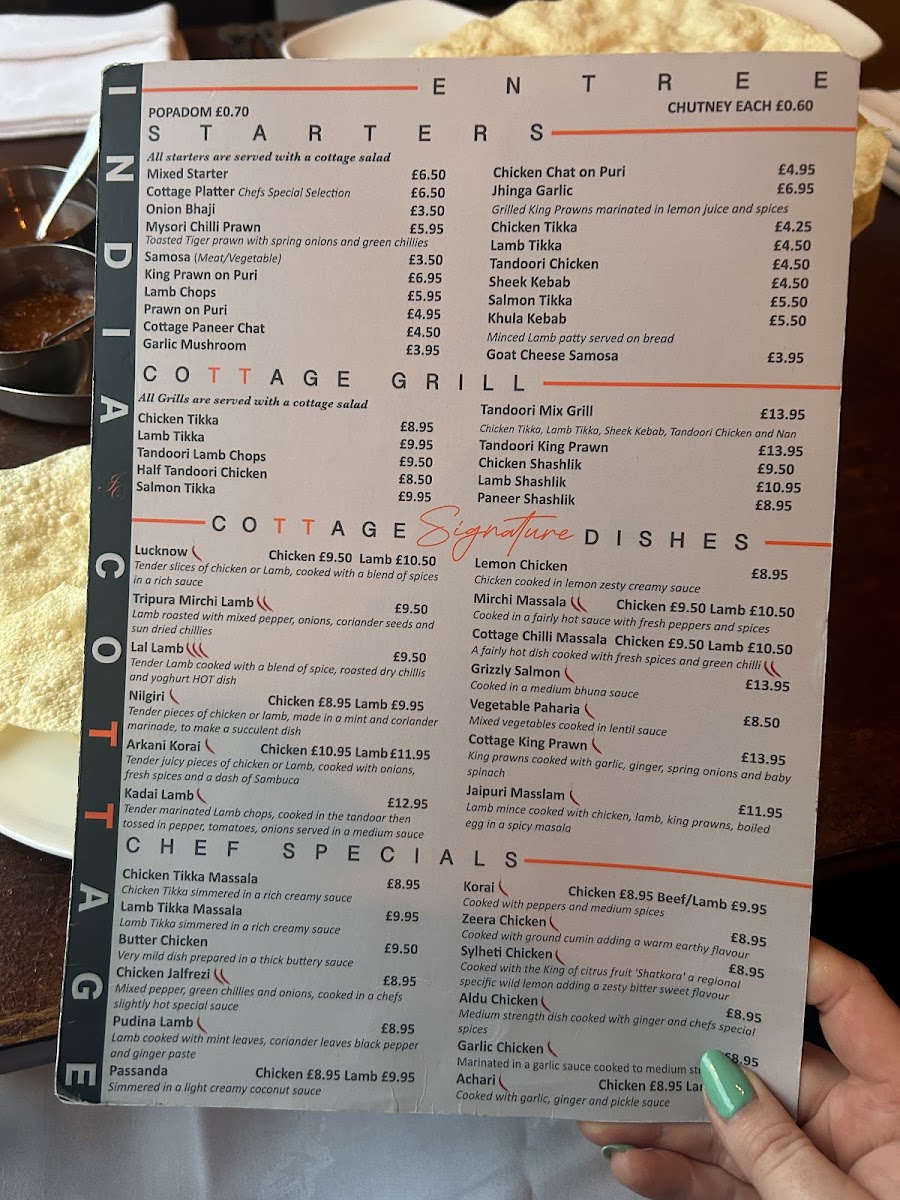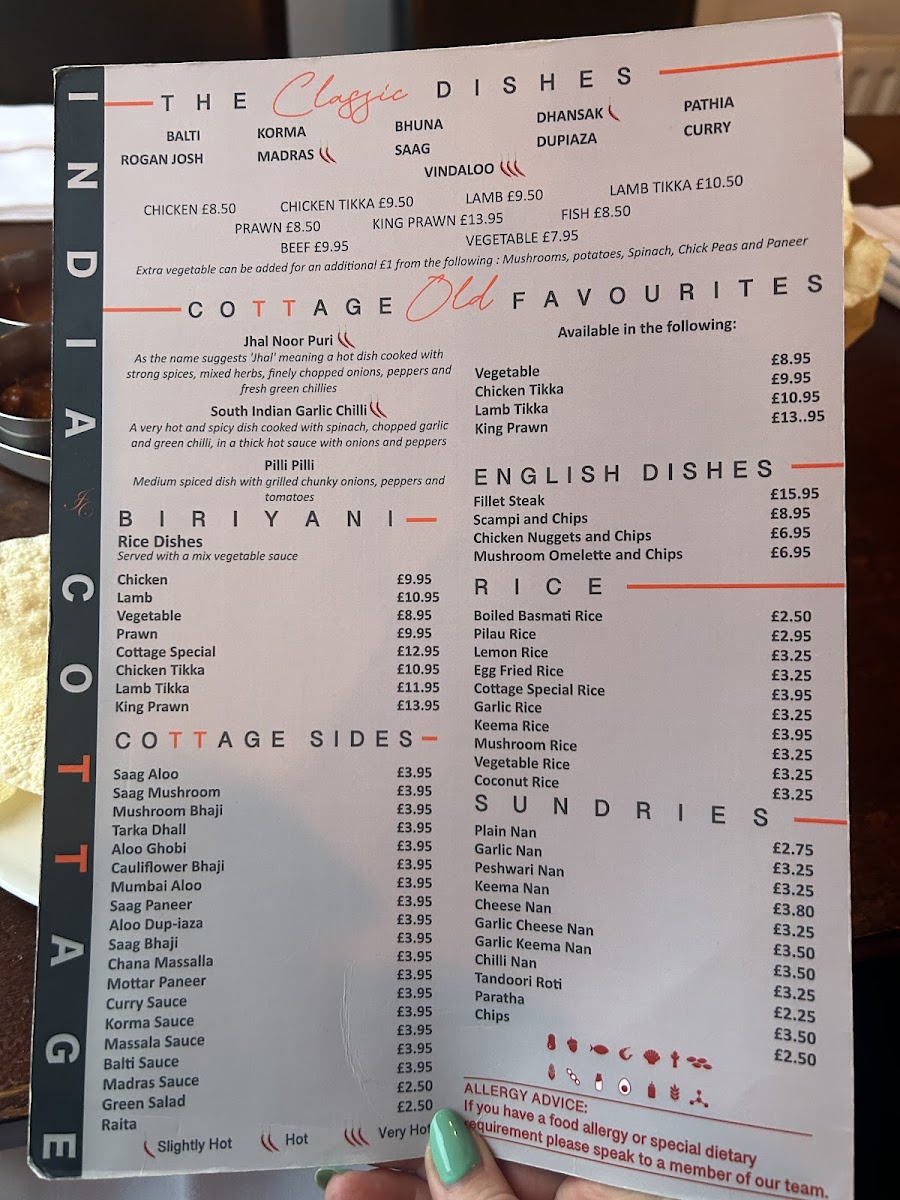 Very hot. Tender lamb cooked with a blend of spice, roasted dry chilli and yoghurt. Hot dish