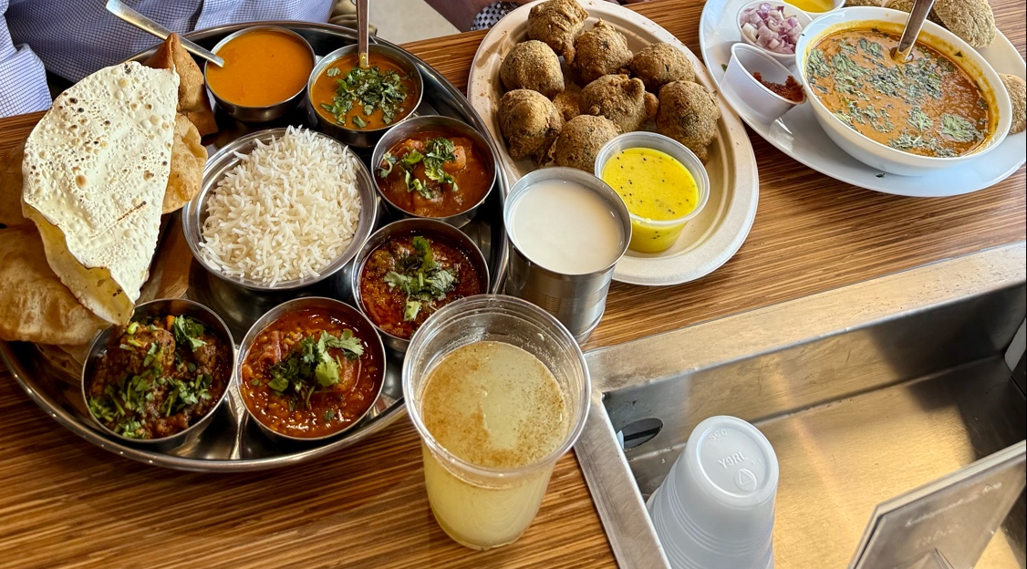 The staff is extremely friendly and helpful. The atmosphere is cozy, could use some candles to offset smells from cleaning supplies. The food is authentic, reminded me of my childhood growing up in Gujarat would love to come back to try more of the menu! Items we ordered: • Nimbu Pani - Traditional Gujarati lemonade with jeeru (cumin) and not super sweet • Methi Gota - came with authentic kadhi • Dal Bati - came with ghee, garlic chutney, raw onions. It was great, but I’d recommend making it even better by serving it with churma that traditional Rajasthani dal bati usually comes with. • Kathiyawadi King Special Gujarati Thali - Came with 4 shaaks (bataka, chana, sev tameta, undhiyu), dal, rice, mango ras, 3 puri, 2 roti, 1 papad, 1 samosa, and plain chaas. All of it was amazing but we especially loved the Ras and the sev tameta