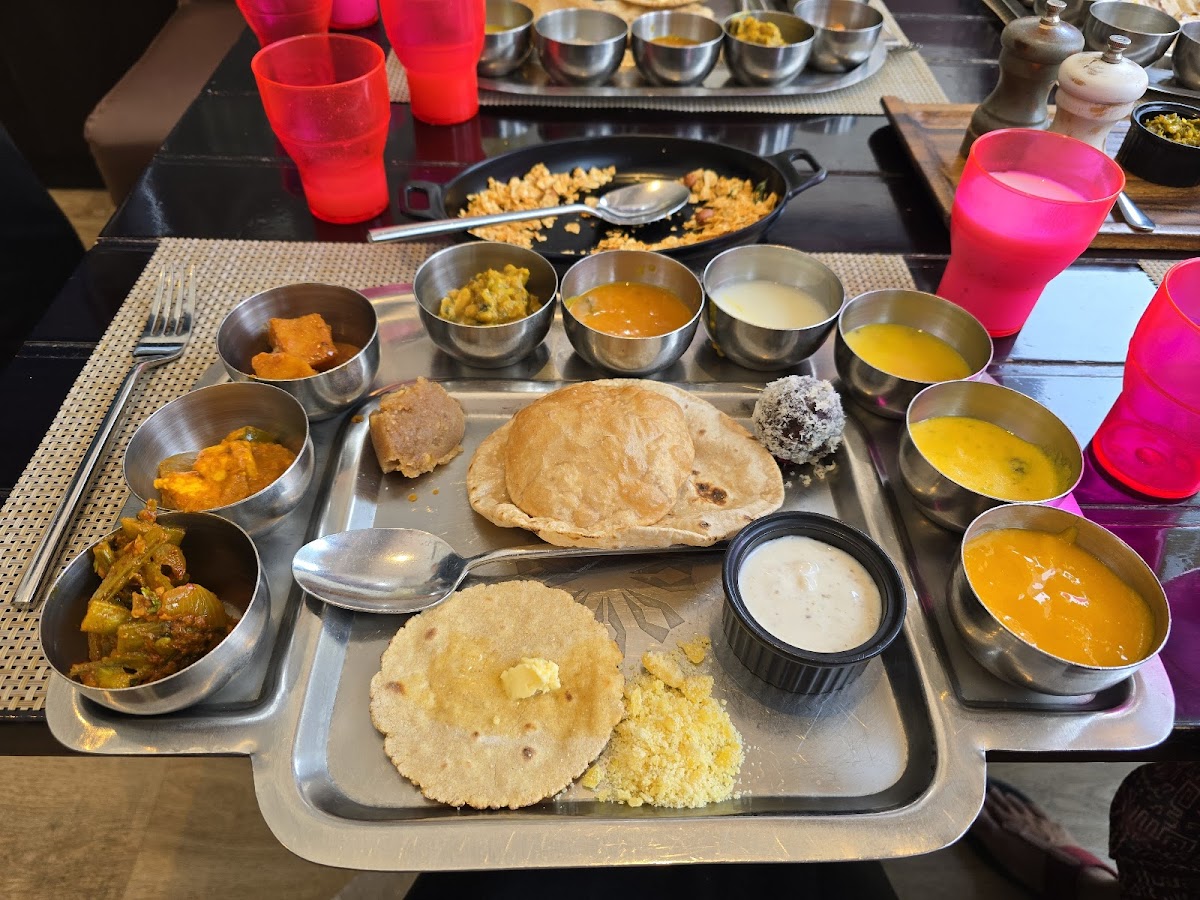 We got a classic weekend thali. While the food was not spectacular or particularly memorable, the service and atmosphere more than made up for it. I appreciate the diversity of dishes and the exquisite flavours. I liked the chana in particular. This thali still stands out compared to other restaurants. The cushion seats were also a fun experience that ended in a food coma :) Would recommend! Unlimited food for that price is a great deal!