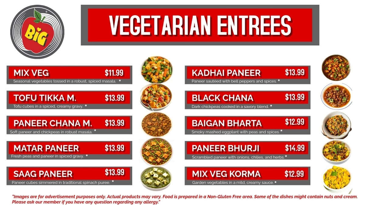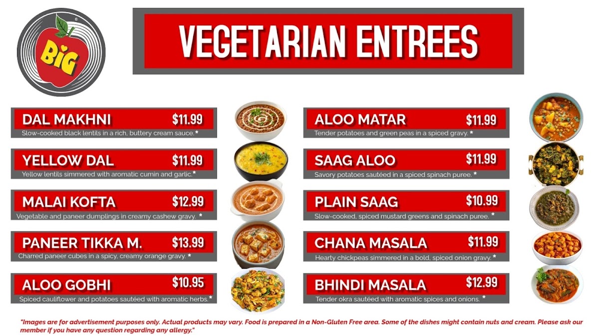 Home-made cheese cooked with bell pepper, onions, garlic, ginger, tomatoes, cream, and spices.