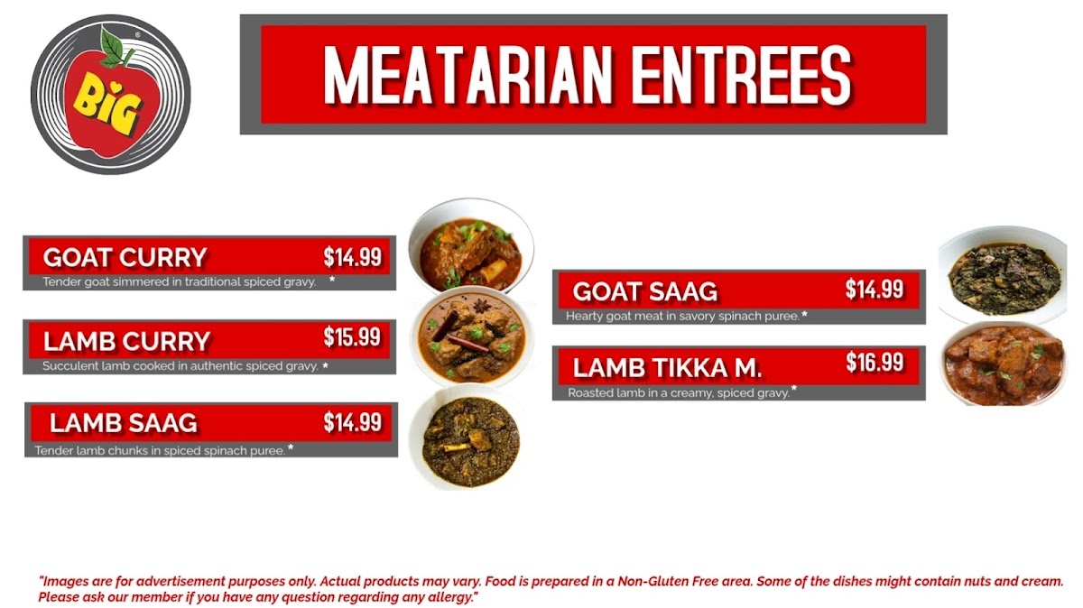 Traditional dish cooked with boneless goat, onions, garlic, ginger, tomatoes, and curry spices.