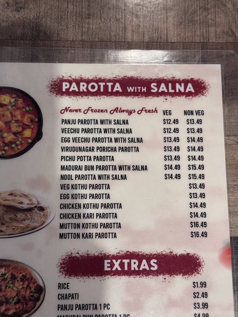 Thin, flaky, and multi-layered flatbread typically made with all-purpose flour, a staple in South Indian cuisine.
