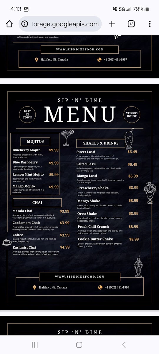 Sip 'n' Dine Menu