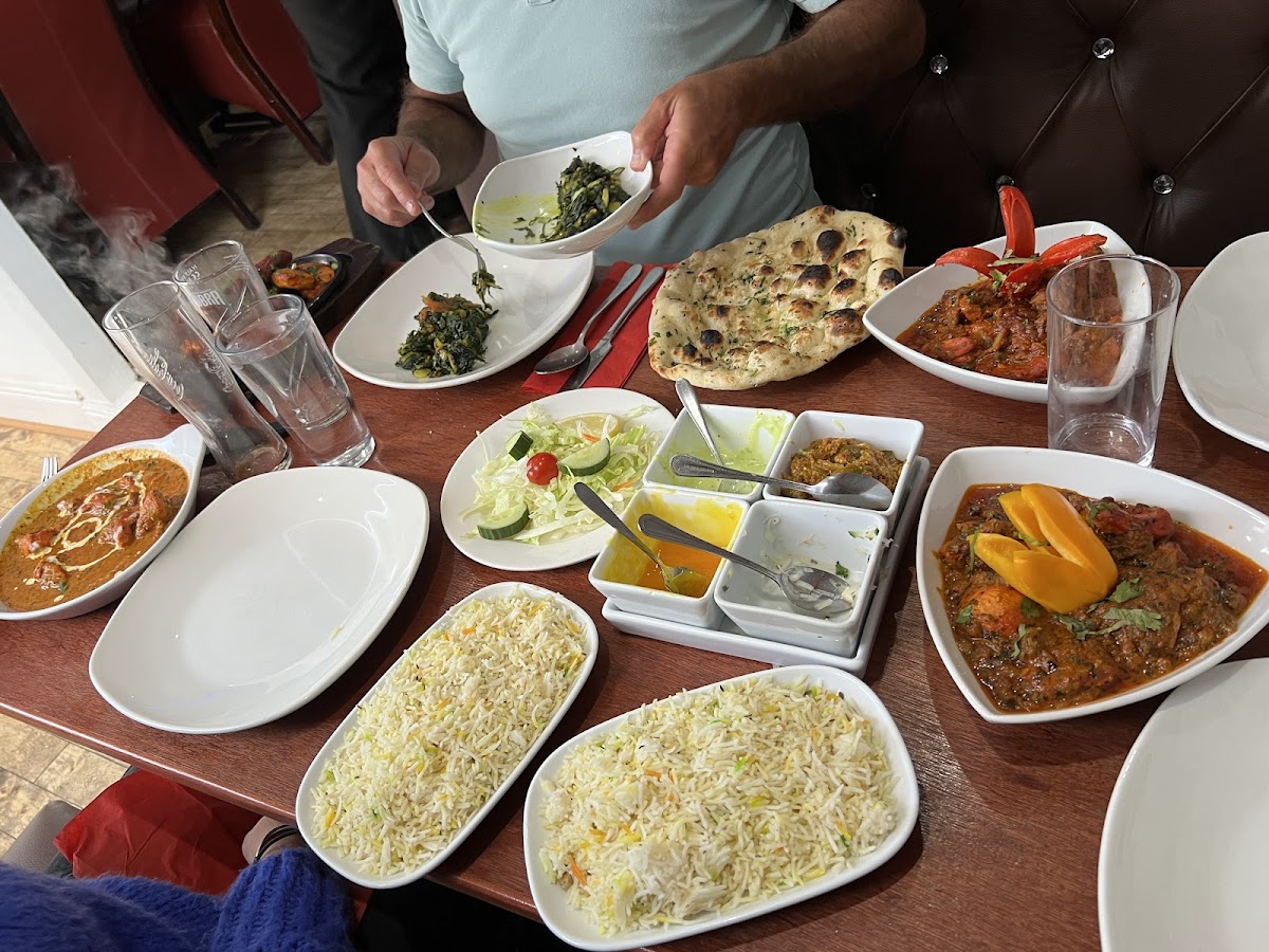 We arrived late on the Friday evening to find the restaurant full. A waiter took our phone number and said a table should be free in the twenty minutes. Sure enough, twenty minutes later we received a call saying a table was available. We ordered papadums and pickles to start and I must say, they were the most generous portions of pickles I have ever had. I had the chicken Madras as my main and my mate had a house special. Both meals were excellent and I would particularly like to mention the quality of the chicken which was superb.