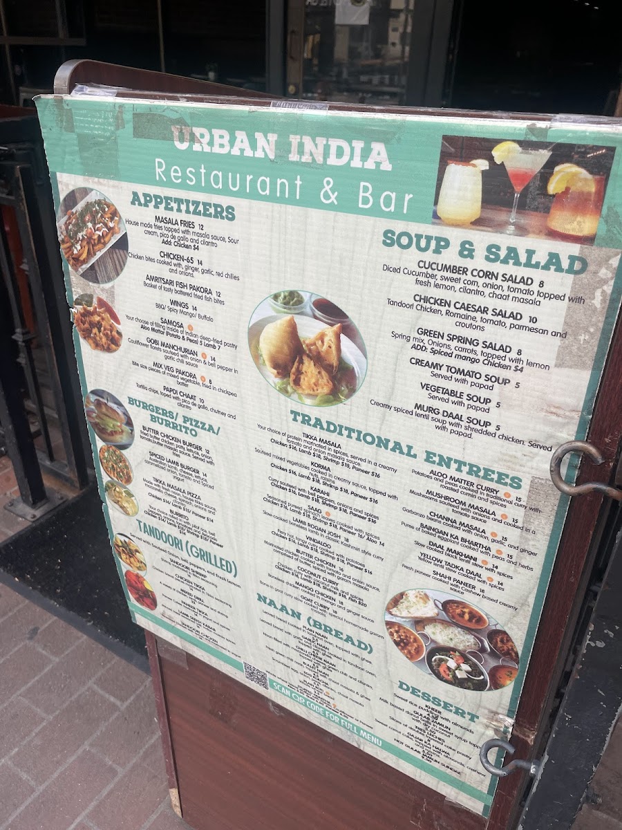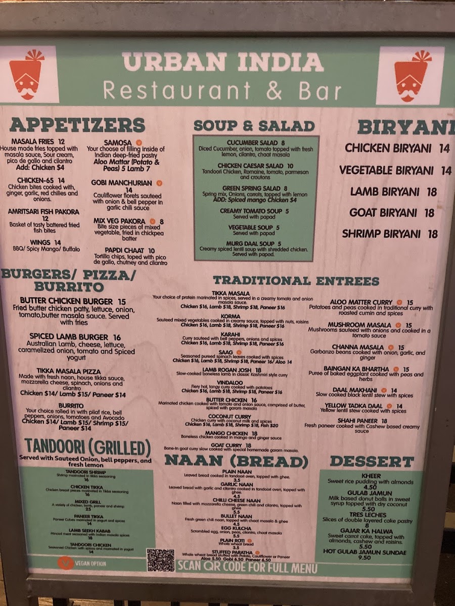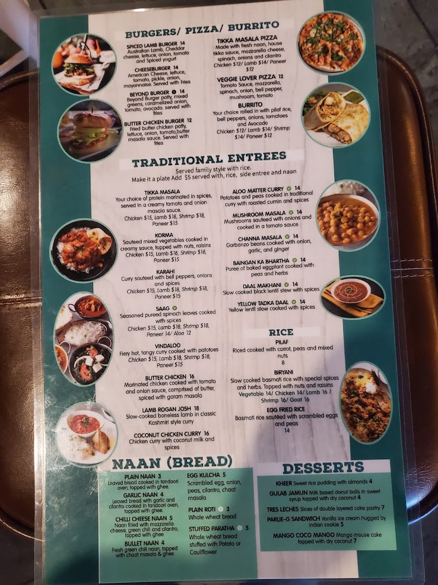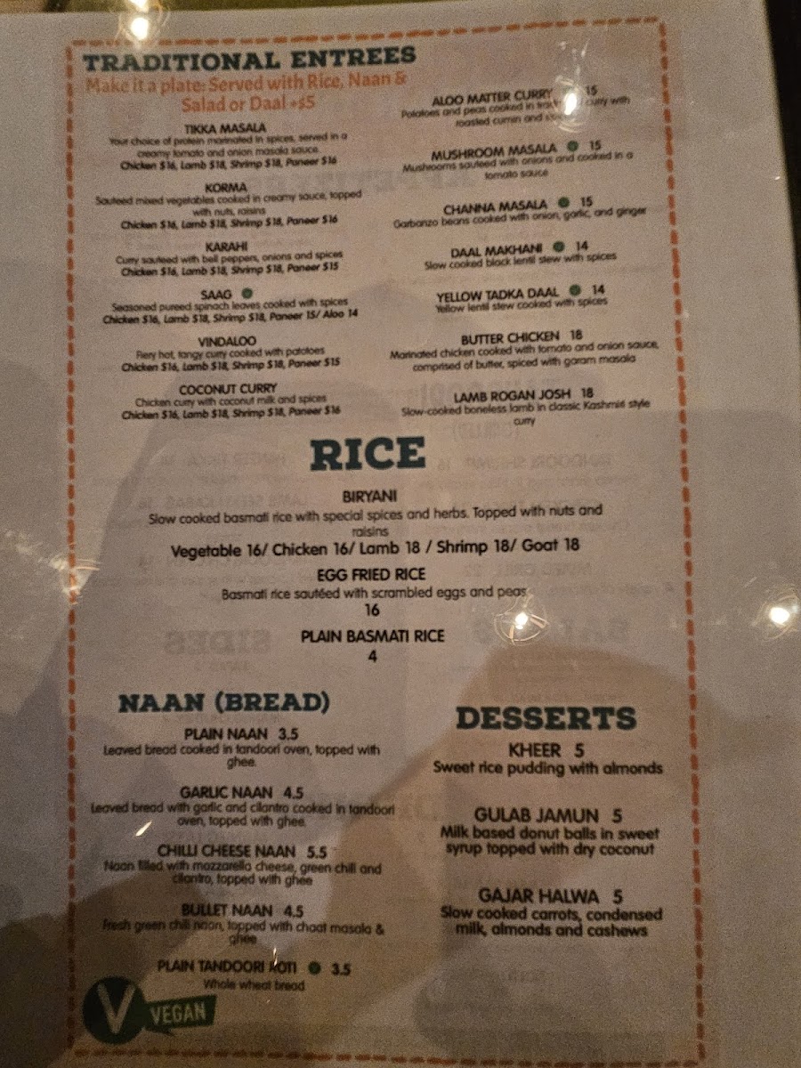 Seasoned pureed spinach leaves cooked with paneer. Served with basmati rice