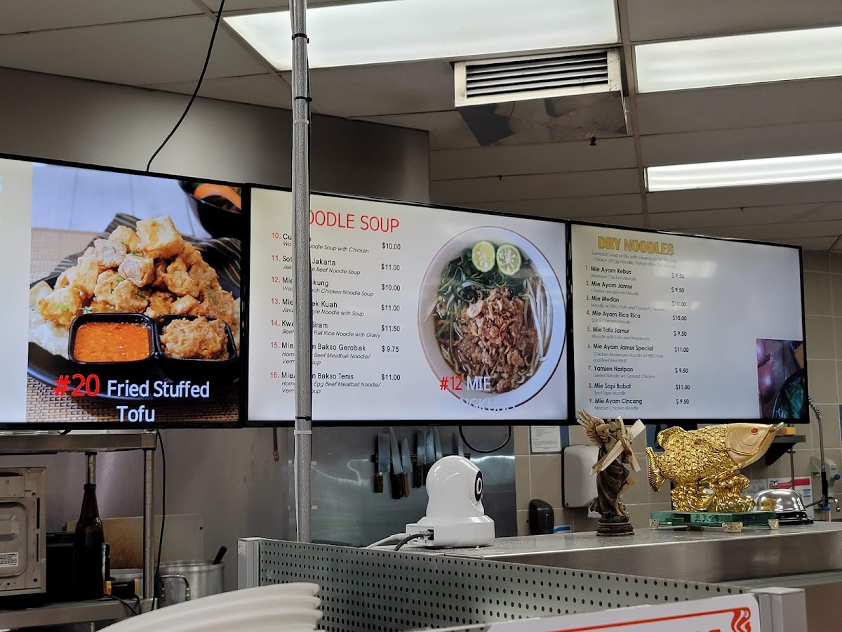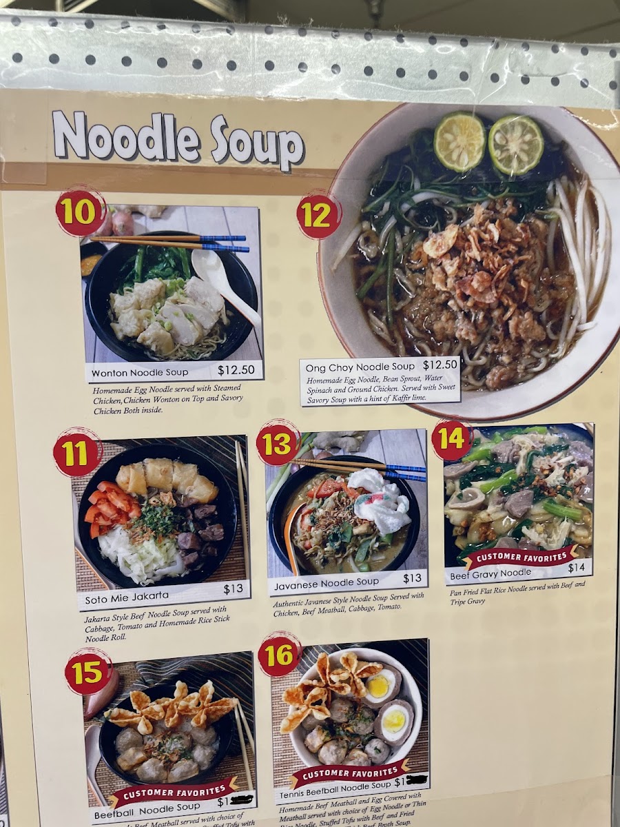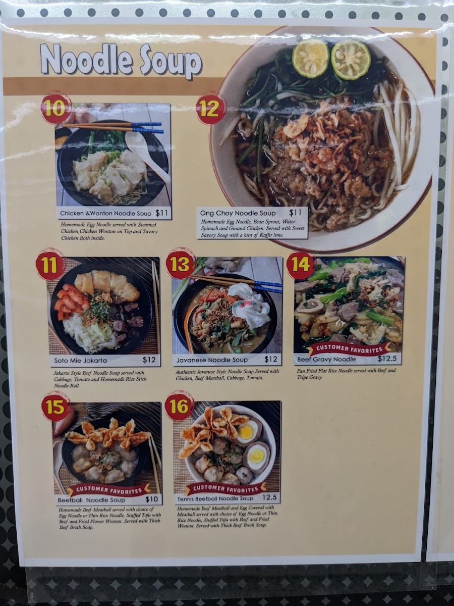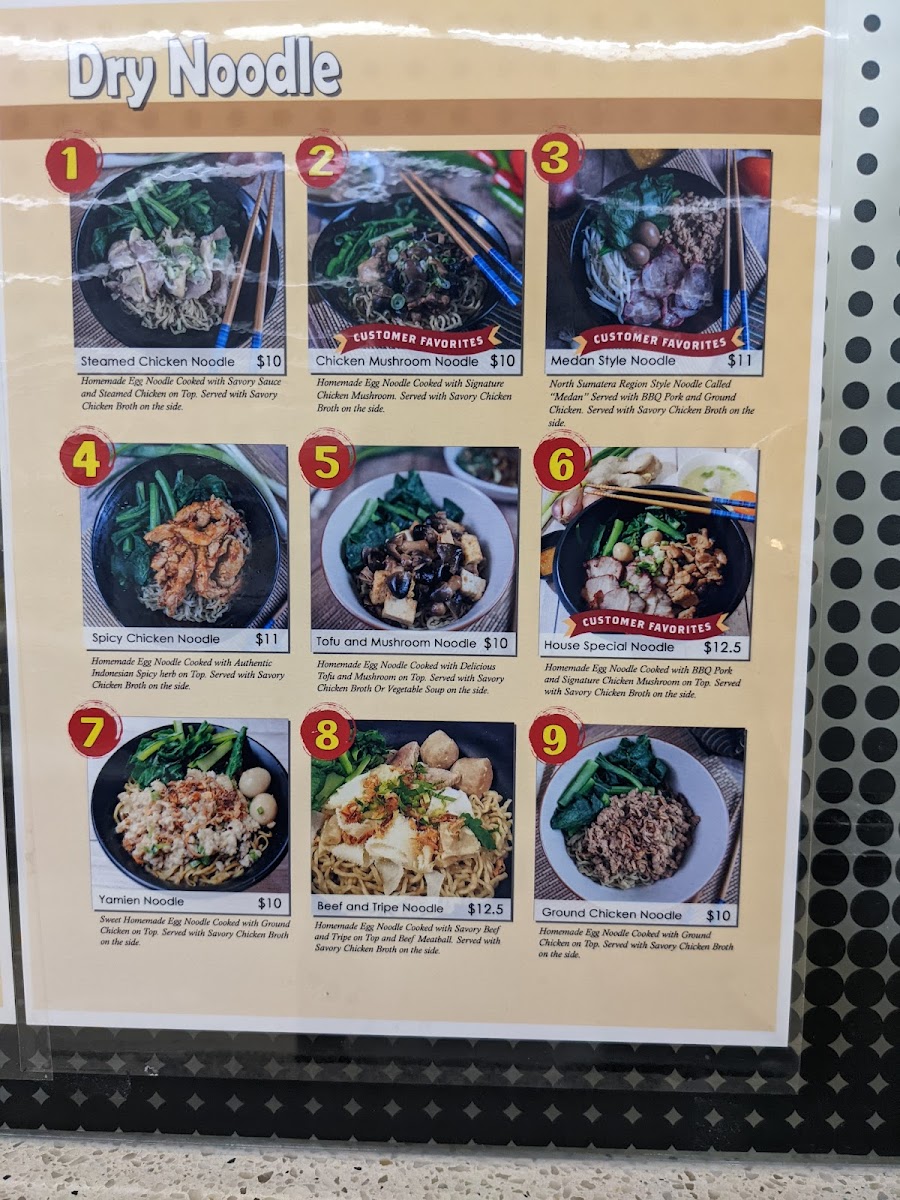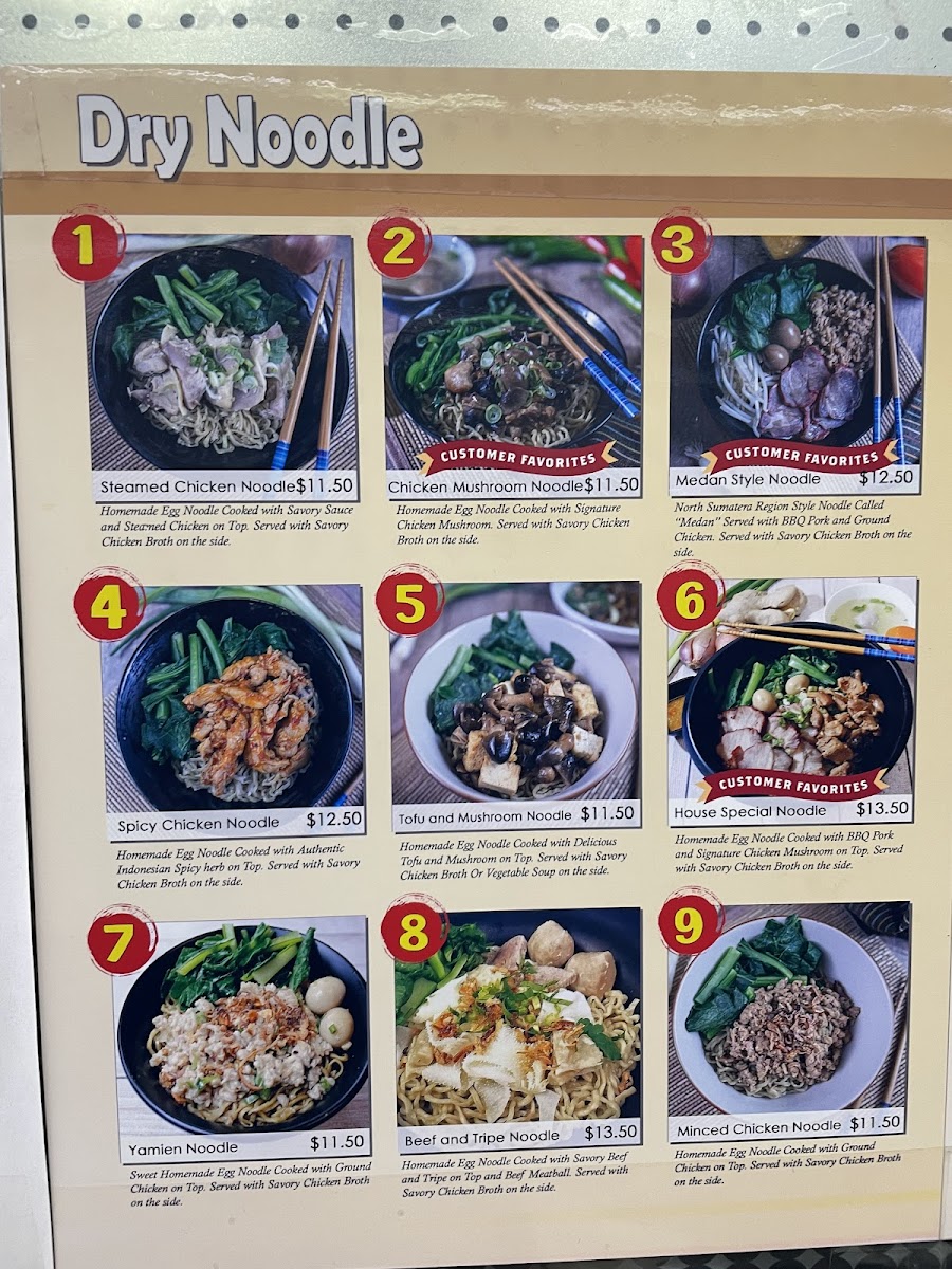 Spicy. Homemade egg noodle cooked with authentic Indonesian spicy herb on top served with savory chicken broth on the side.homemade egg noodle cooked with savory toppings and served with delicious Broth Soup.