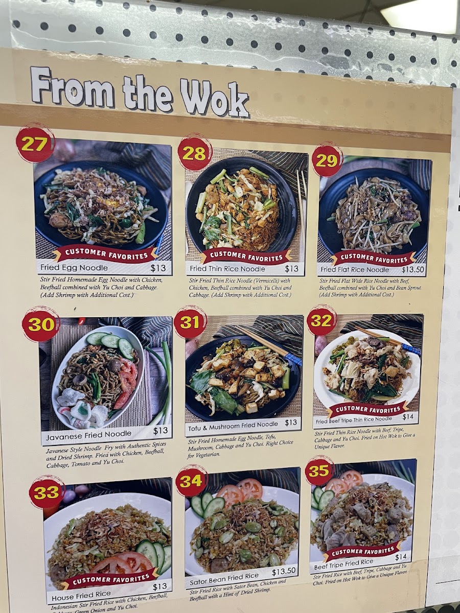Javanese style noodle fry with authentic spices and dried shrimp fried with chicken, beef ball, cabbage, tomato and yu Choi.fried with high heat for a smokiness from the wok.