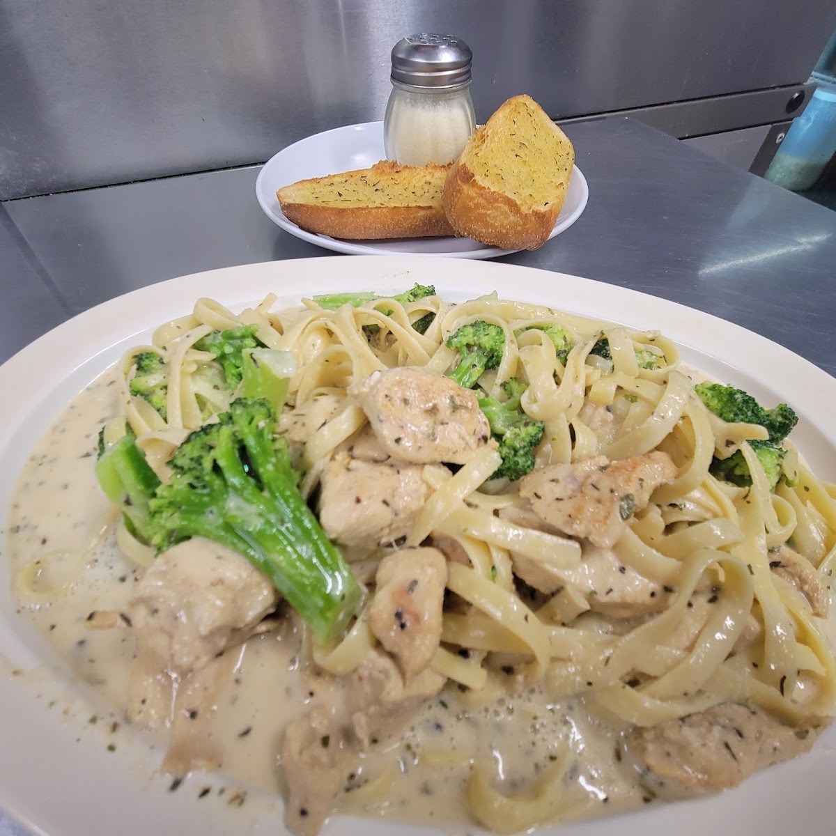 Delicious food! It's worth finding a parking spot for! Both the chicken and the shrimp alfredo are delicious.