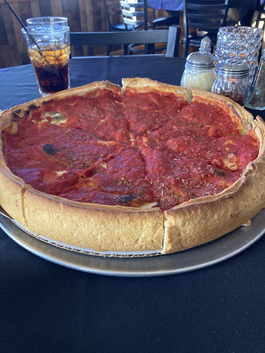I live near Chicago and this is some of the best Deep Dish Pizza I have had in years. The sauce was flavorful and perfect amount, right amount of cheese, stringing from the spatula and the Crust was perfect, you could tell it was fresh homemade dough. The staff was top notch and the bartender was excellent. She even asked if I wanted Wisconsin or Kentucky Old Fashioned. Finished off with a very nice Lemoncello, it was a very nice touch. Give it a try, it's on the water with a nice view. Nice Job Angelini! Great Restaurant here