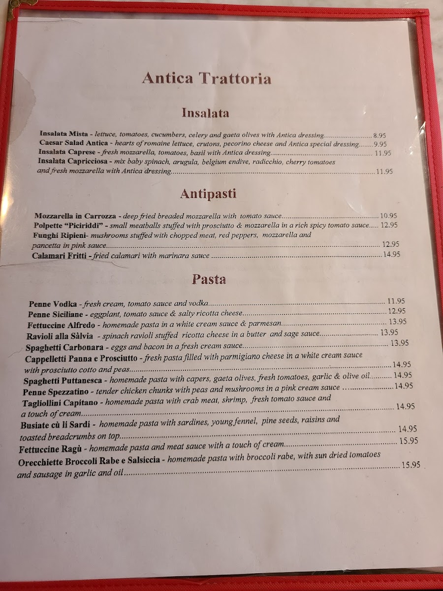 Arugola, spinach, Belgium endive radicchio, cherry tomatoes, and fresh mozzarella with Antica dressing.