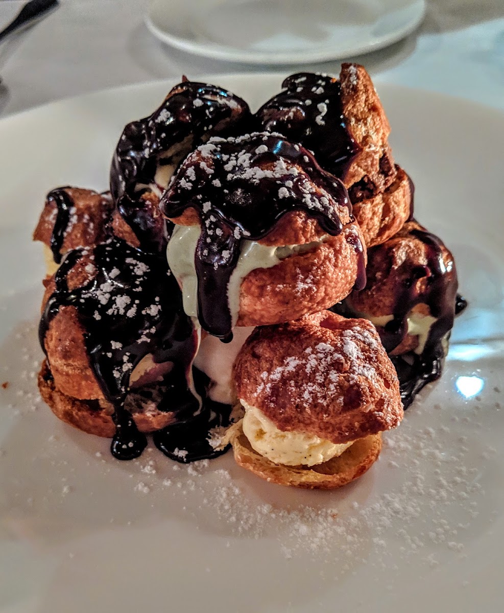 I solo dined outdoors in early December without a reservation. I was seated quickly and the heaters kept me warm, the staff was attentive and kind, the atmosphere was warm and cozy. I’m from CT and I love a good authentic Italian restaurant. The chicken meatballs are a fantastic meal all on their own, imagine giant Italian wedding soup meatballs with curried rice pilaf. The curry wasn’t over powering and it was delightful. The handmade pasta in the fettuccini was perfectly executed. The flavors were light and full of soul. I had 2 glasses of wine and ended the night with peppermint tea. All together my total was a little over $100. I could’ve easily been full on a $45 bill. I’m currently residing down south where I don’t get the luxury of good Italian cuisine like I did back home so I splurged a little. For a fine dining Italian experience it was well worth it. I will return.