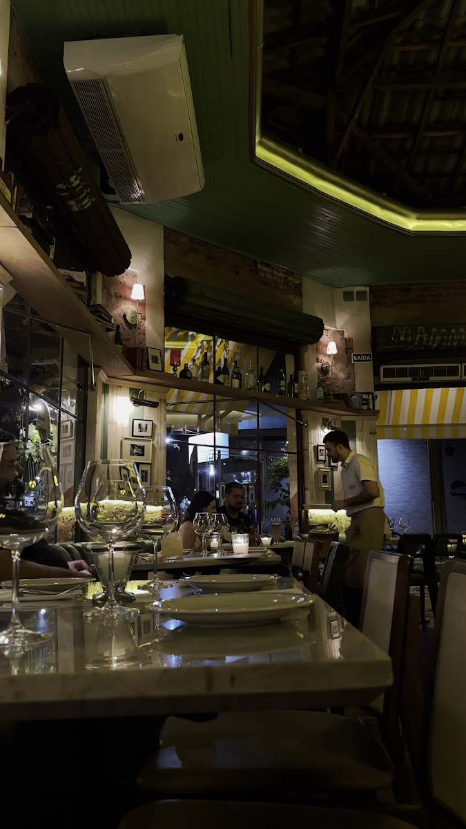 Ambiente agradável, com música em volume médio e iluminação amarelada que cria um ar intimista, misturando rusticidade e sofisticação. O cardápio oferece tanto petiscos para compartilhar quanto pratos principais, além de um menu completo (entrada, prato principal e sobremesa), que neste dia custava cerca de R$145. A comida surpreendeu pelo tempero: cada prato tem um sabor único e especial. Recomendo especialmente para datas comemorativas, como aniversários. Não é um restaurante barato, mas, na minha opinião, vale cada centavo!