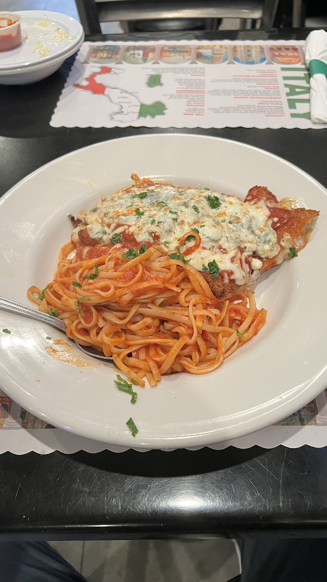 This place is located in the middle of a shopping area. Food is pretty good. We ordered a cheese pizza and a linguini white clam sauce. The pizza is pretty close to NY style pizza. We are definitely going back to try some other plates. The waitress was very friendly and they are open late.