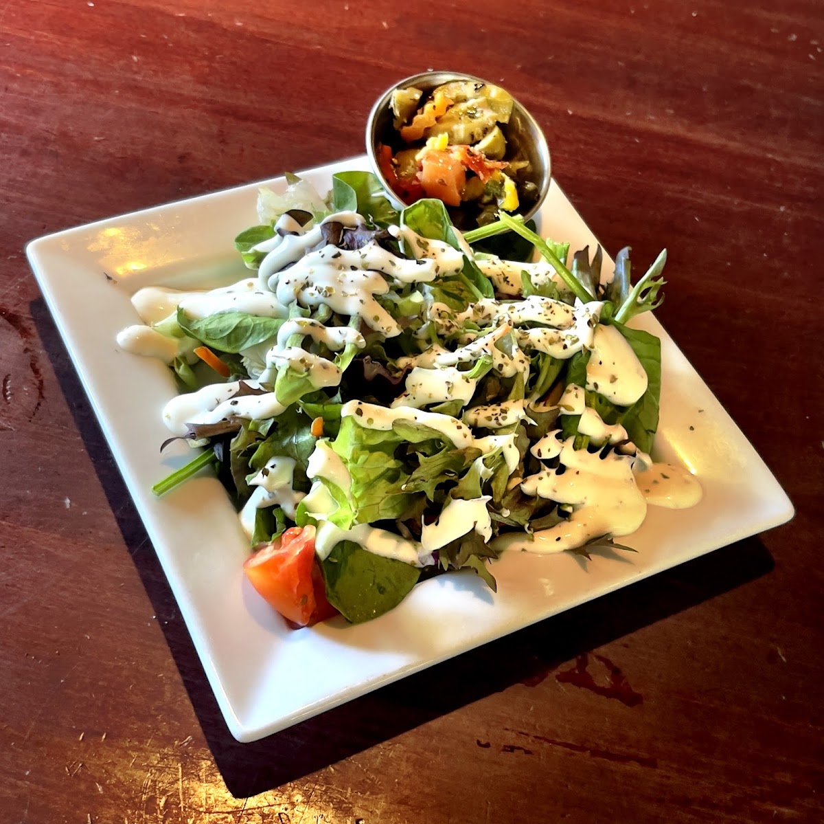 This is my first time, and we were so tired, that we chose take-out and went back to the Airbnb. That being said, the greeter was friendly, the restaurant atmosphere is very nice, ample parking, and the Muffuletta, soup and potato salad was delicious. You have to get the mushrooms!!! Worth the extra. Before we leave the area, we definitely will return for dine-in.
