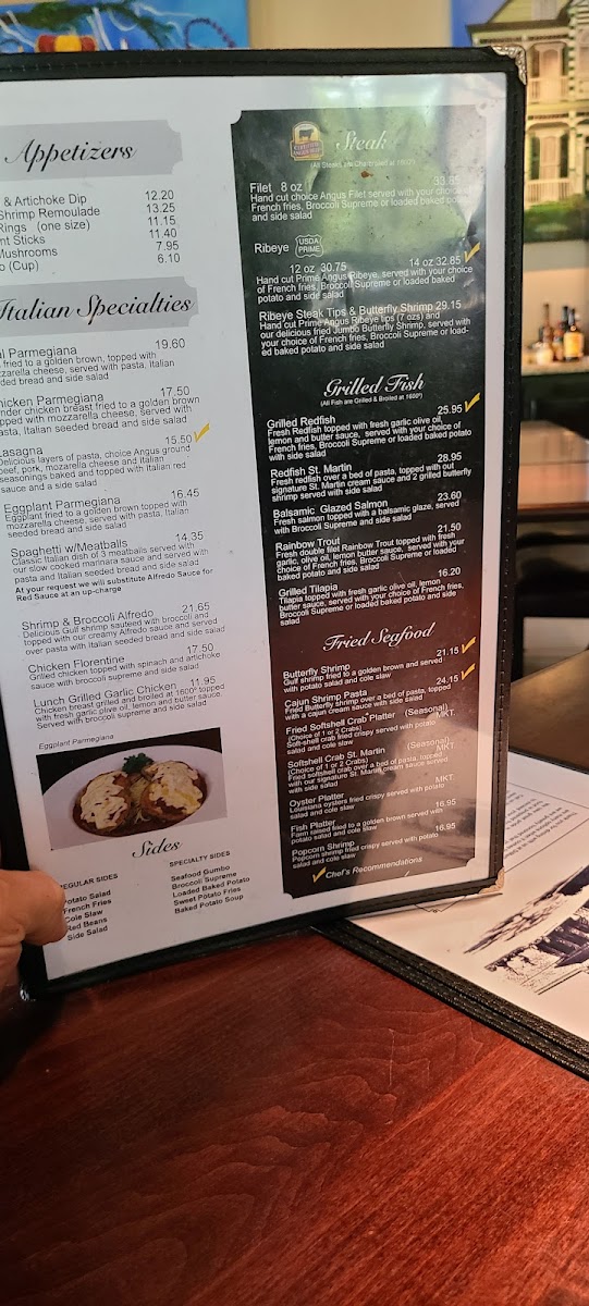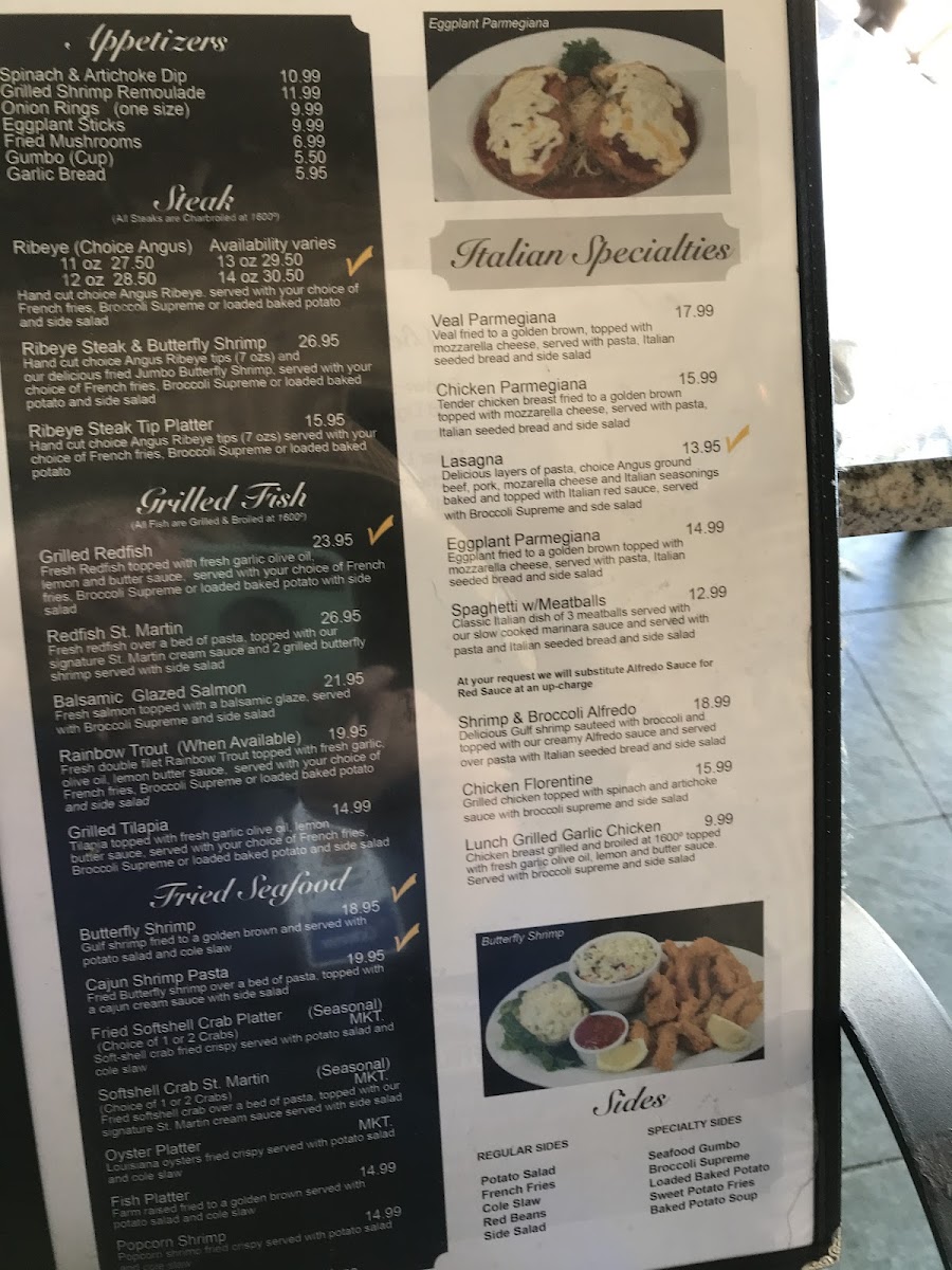 Fresh redfish over a bed of pasta, topped with our signature St. Martin cream sauce and 2 grilled butterfly shrimp served with side salad.