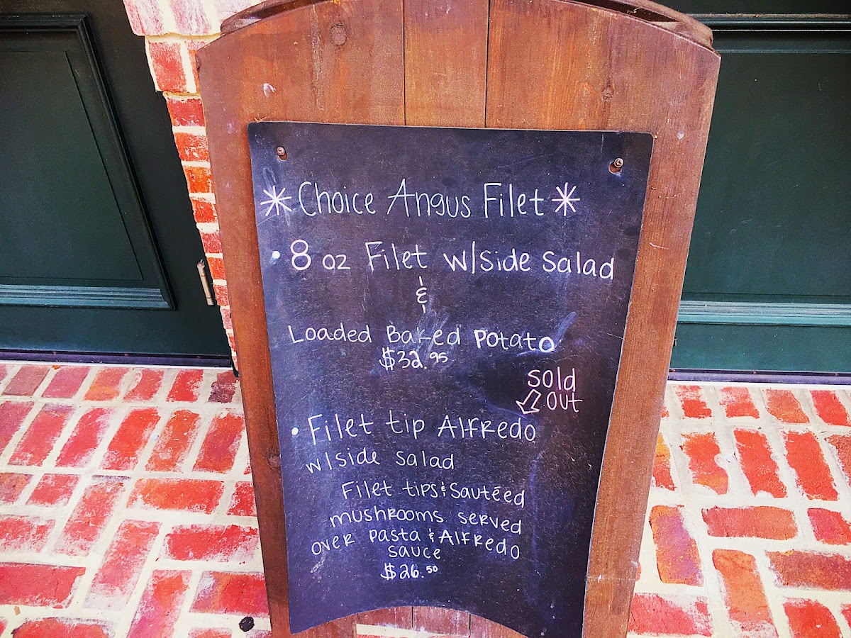 Hand-cut choice Angus filet, served with your choice of french fries, broccoli supreme or loaded baked potato and side salad.
