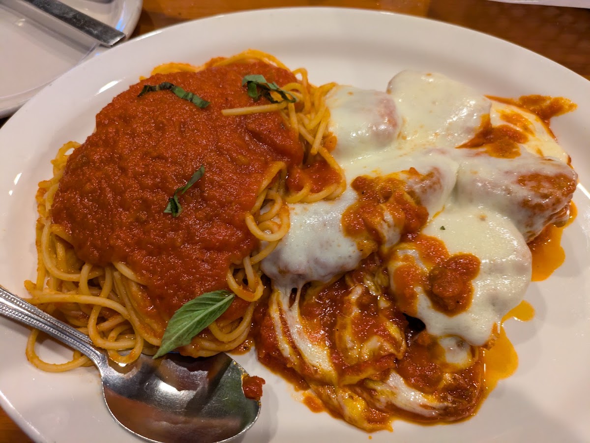Food was okay. Nothing bad, but nothing great. Everything tasted homemade, but at the same time didn't taste like it was seasoned enough. Either way they have a lit of options to choose from. The fried cheese raviolis were really good, along with the garlic knots. Staff was super firendly and made you feel right at home. I'd good back to try something else on the menu.