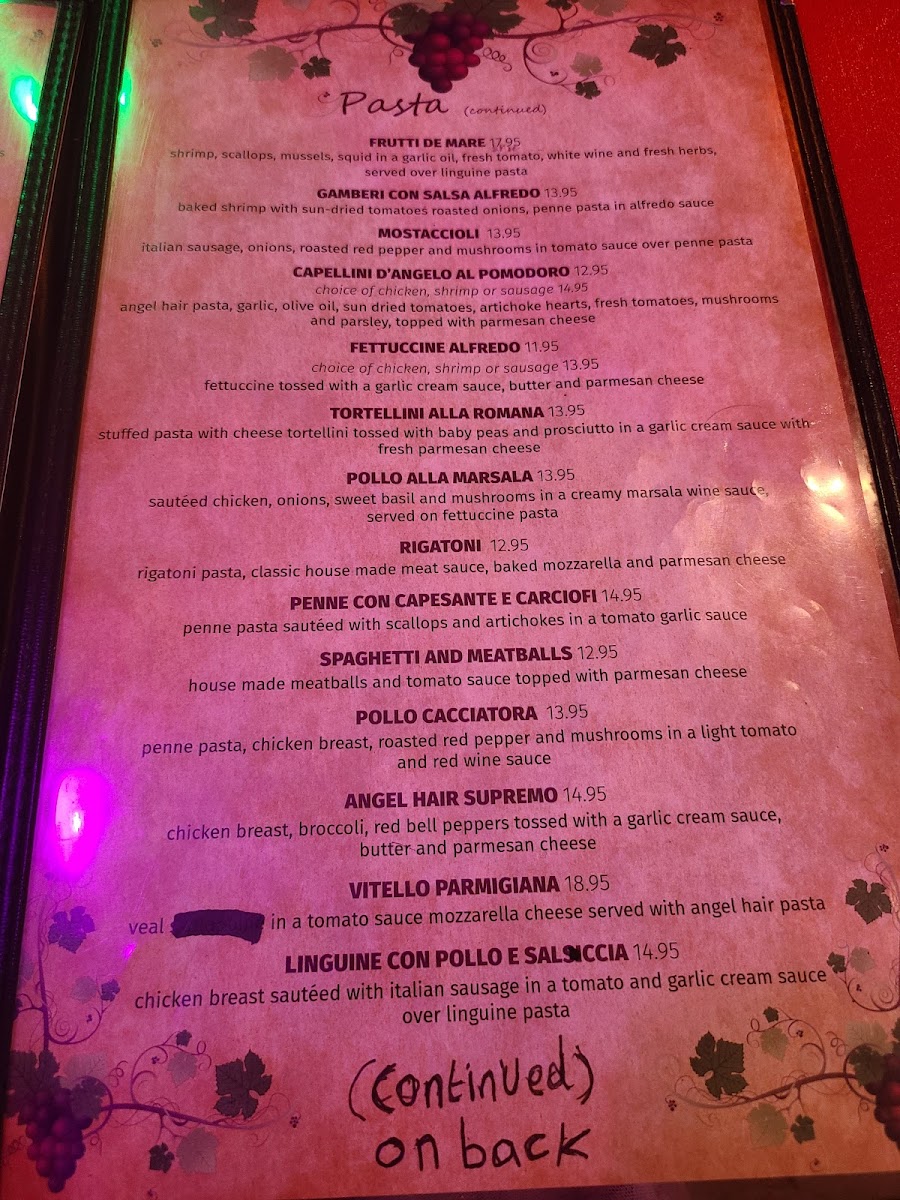 Sautéed chicken, onions, sweet basil and mushrooms in a creamy marsala wine sauce, served on fettuccine pasta