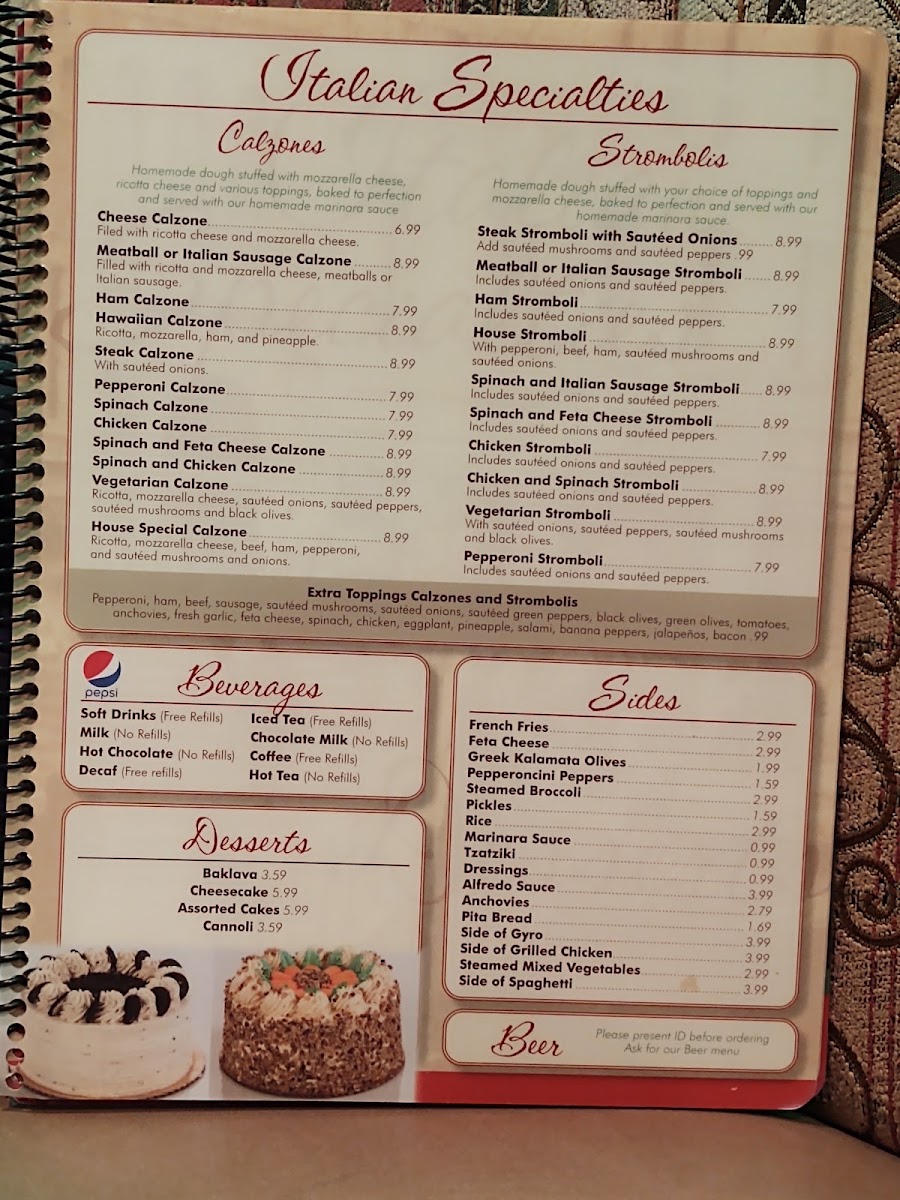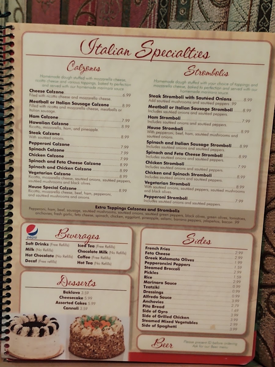 Crisp lettuce, cucumbers, tomatoes, green peppers, onions, Genoa salami, ham, pepperoni, Provolone cheese, Greek olives, pepperoncini peppers and house dressing