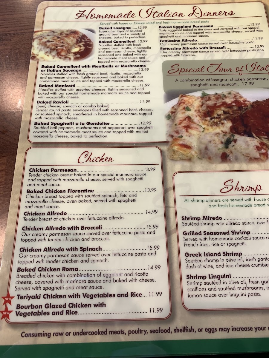 Tender chicken breast baked in our special marinara sauce and topped with mozzarella cheese served with spaghetti & meat sauce