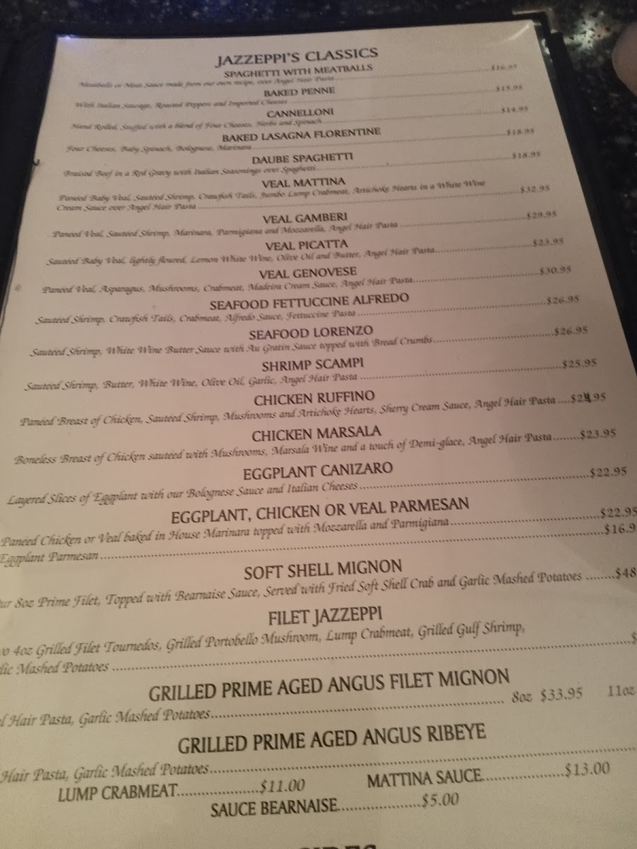 poached eggplant blended with shrimp, crabmeat and seasoned bread crumbs topped with and au-gratin sauce, served with angel hair.