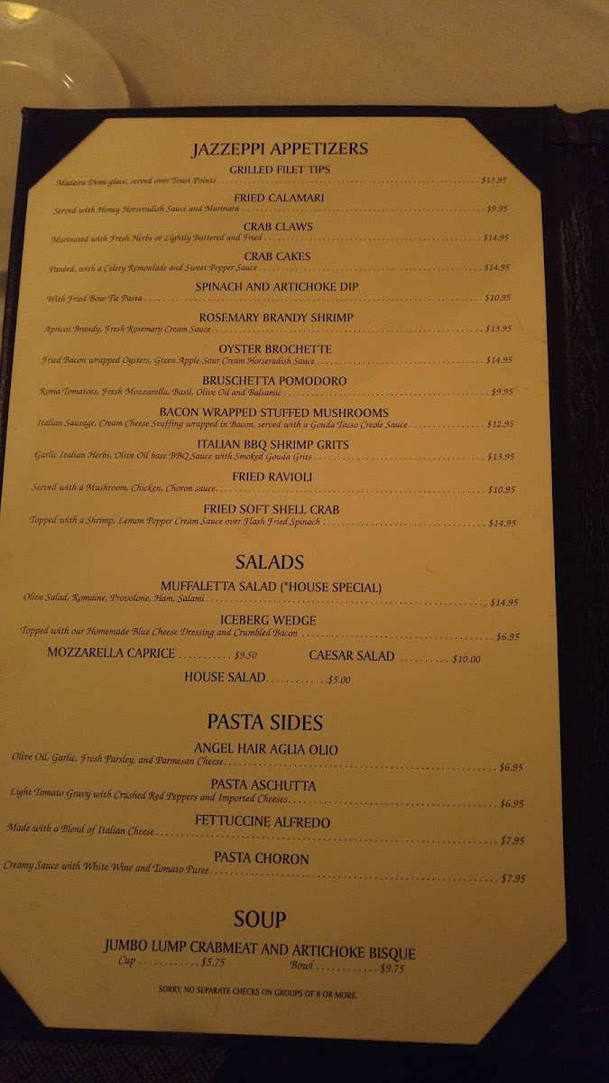 paneed veal with shrimp, jumbo lump crabmeat, crawfish tails and artichoke hearts in a chardonnay cream sauce, served over angel hair pasta.