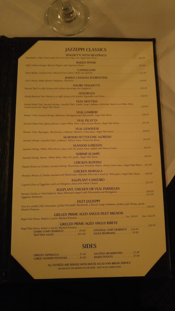 medallions of veal sauteed with jumbo lump crabmeat, mushrooms, asparagus, and roasted shallots topped with a light madeira cream sauce served over angel hair pasta.