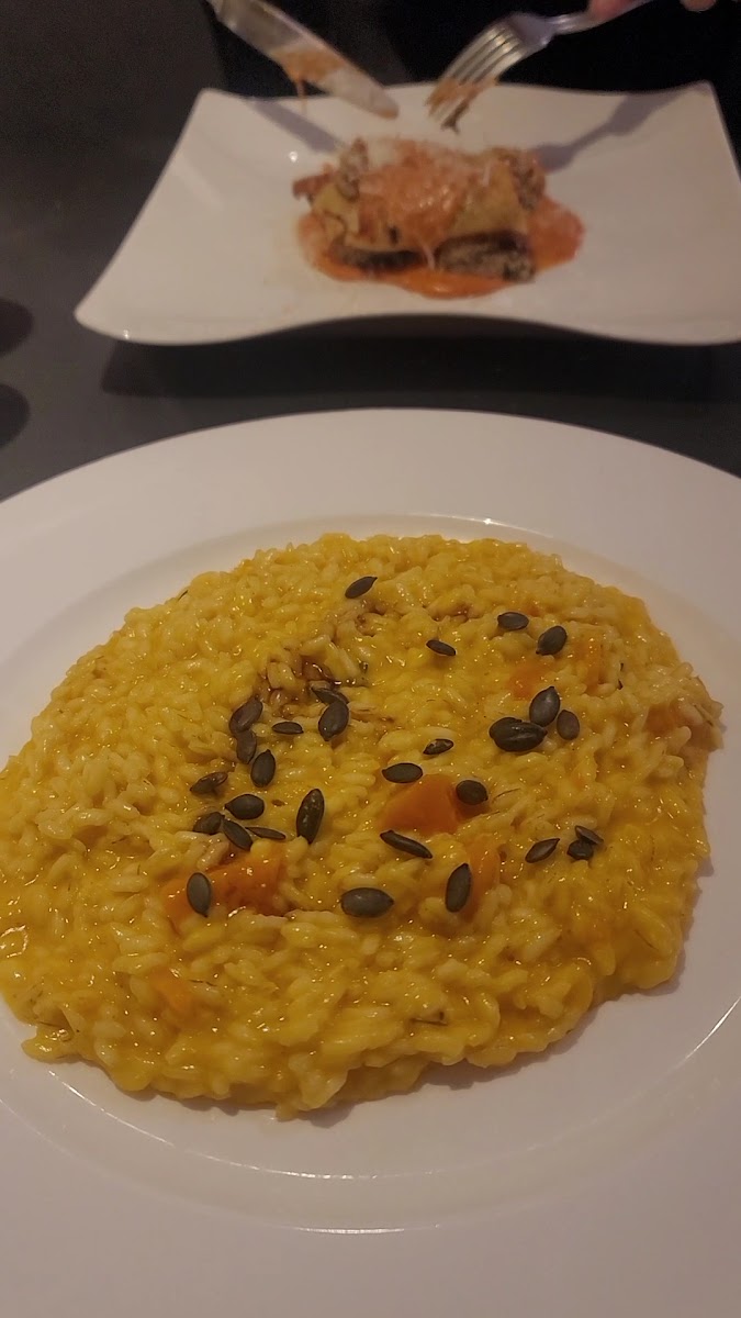 I had high expectations because it's a famous Italian restaurant. The atmosphere and their service were best of best. I ordered prosciutto & mozzarella as a starter, and it was delicious with pre-bread. And main dishes were both new to me. The resotto had a unique grainy texture and had pumpkin in it, which was a bit salty to be honest. The other dish was a bit like Asian dumpling roll, I preferred this one. Pricey, Water is charged by a bottle. Well... I don't think I'd go back for lunch at this price, but I might try dinner.