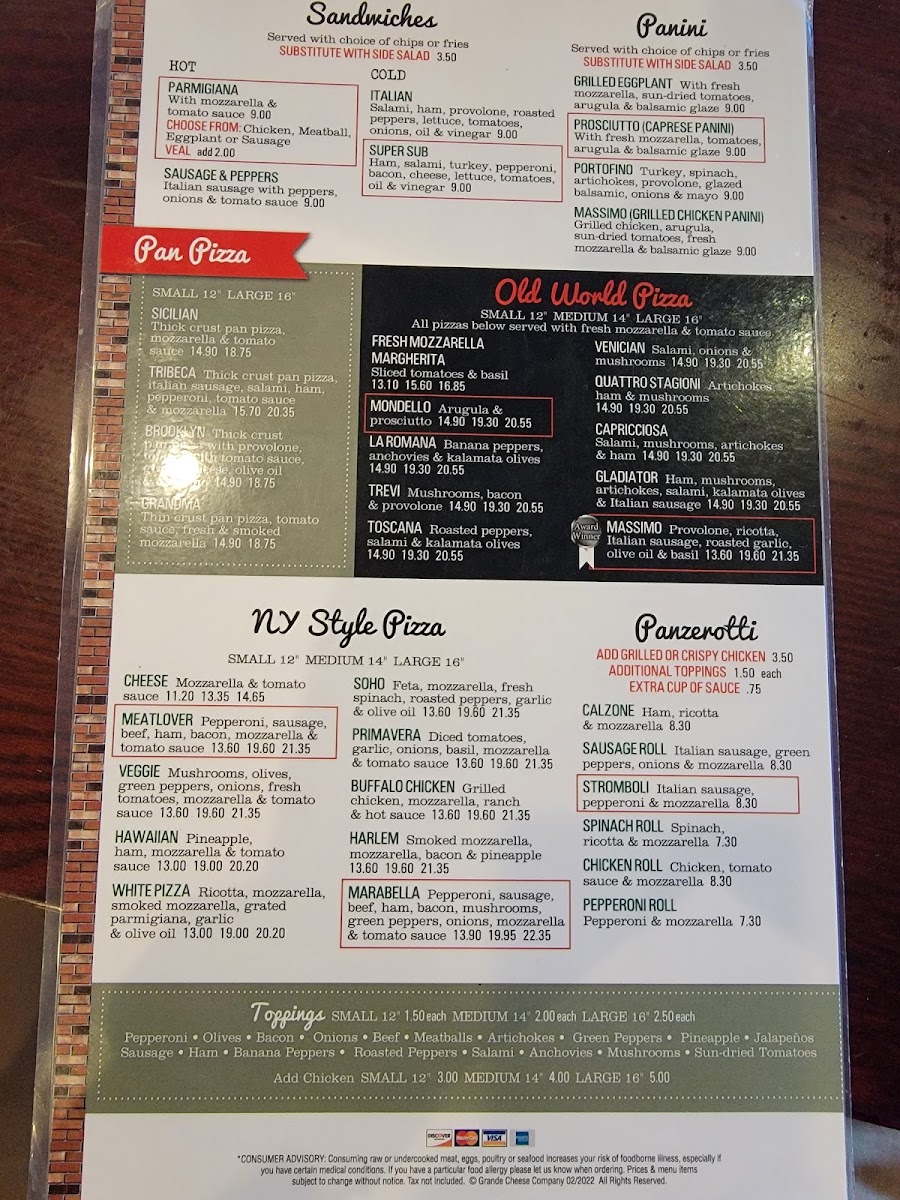 Feta, mozzarella, fresh spinach, roasted peppers, garlic & olive
