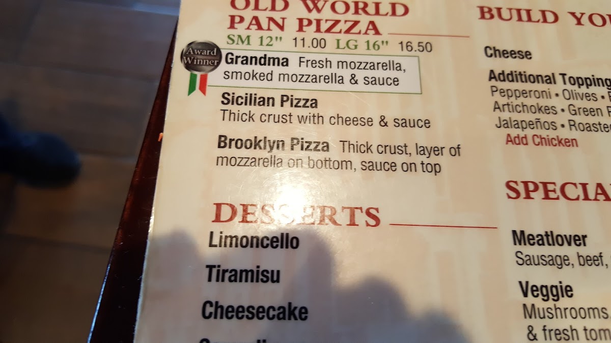 Thick crust pan pizza with provolone, topped with tomato sauce, grated cheese, olive oil & oregano
