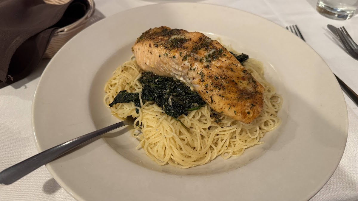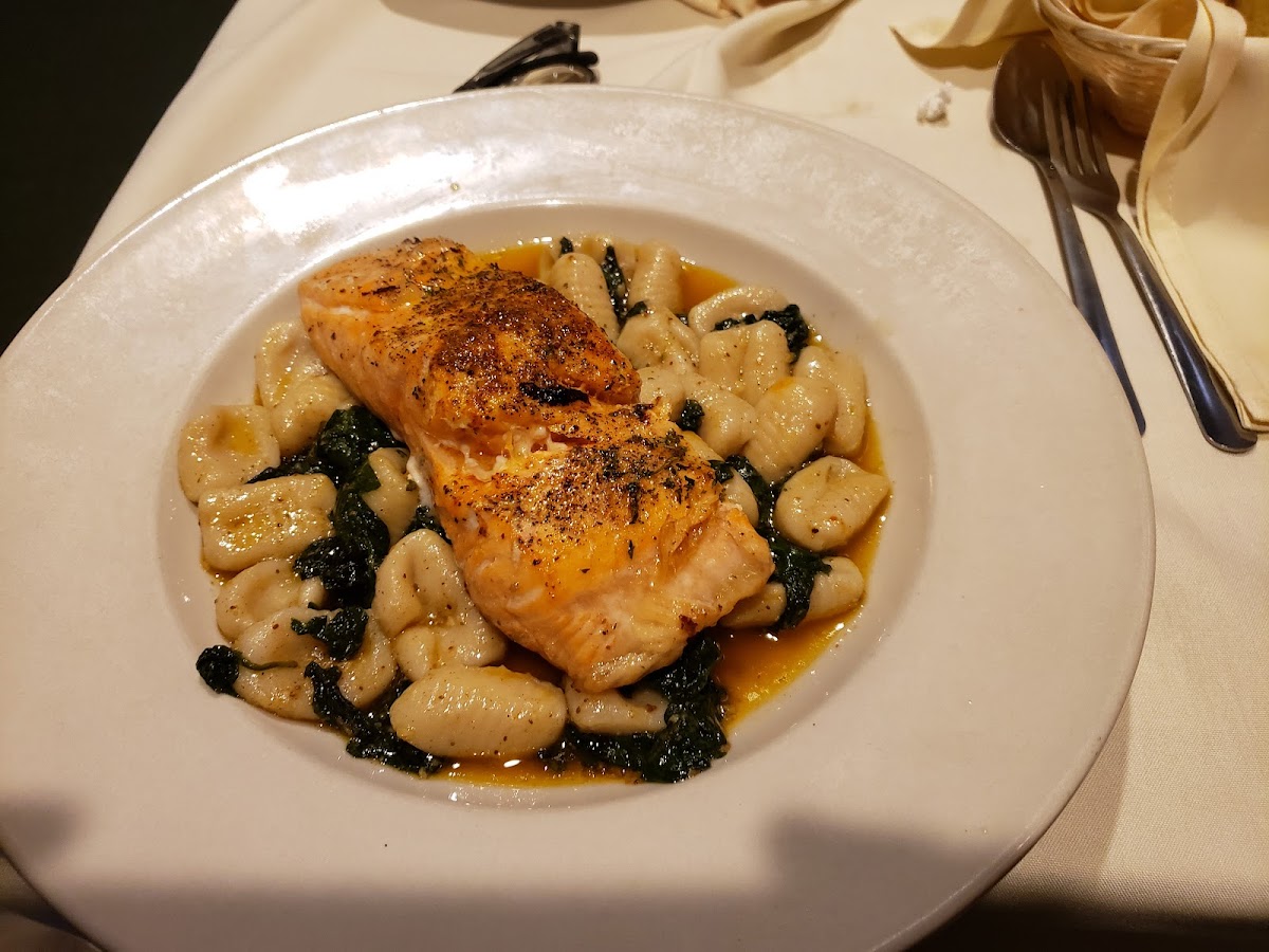 I was visiting the area and was looking for a place to eat by myself. I was pleasantly surprised by how good this place is. The atmosphere is old school and somewhat threadbare…but the salmon Anthony was perfect — a generous portion of clearly fresh salmon, perfectly cooked, nicely seasoned and served over a bed of gnocchi with spinach and olive oil. And, at $21.00…a veritable bargain in the current economy. Add to that a glass of pinot Grigio that was excellent for a house pour.