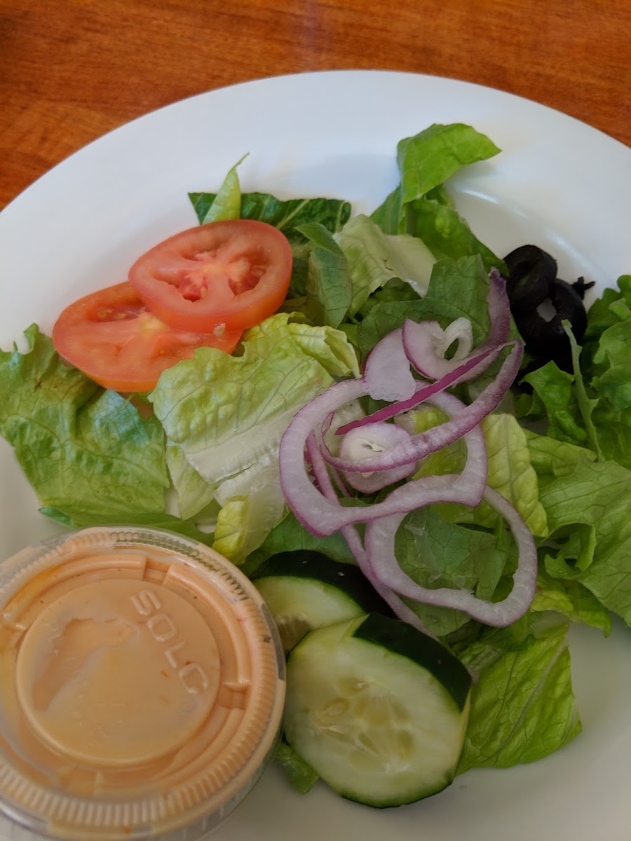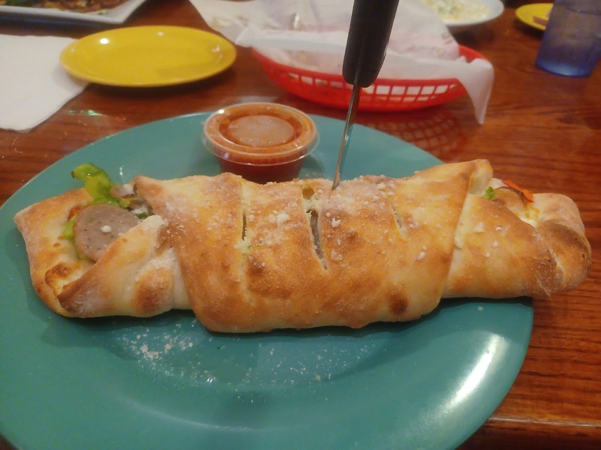 Wow. What a surprise this place was. We ordered a California salad and ask for it split onto two and as you can see it's huge and filled with great fresh ingredients. The family size Calzone was amazing too! Sorry ..it was so big I forgot to take a picture before it was cut up! Returned for more a couple later.. We had Jimmy as our server on the second trip and he is spot on! Just great food!! Have returned several times...its always good!