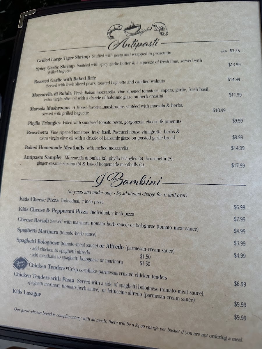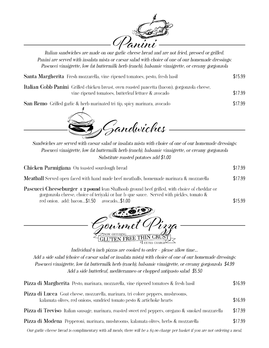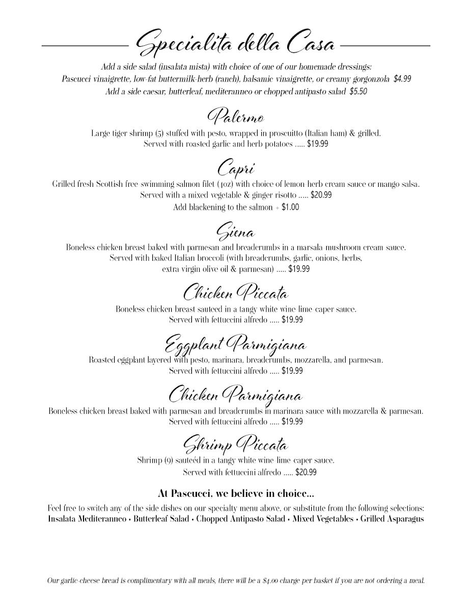 Vine ripened tomatoes, fresh basil. Pascucci house vinaigrette. herbs & extra virgin olive oil with a drizzle of balsamic glaze on toasted garlic bread