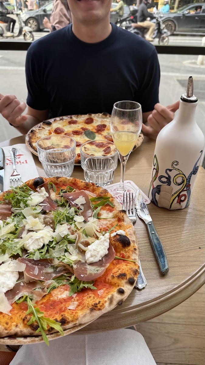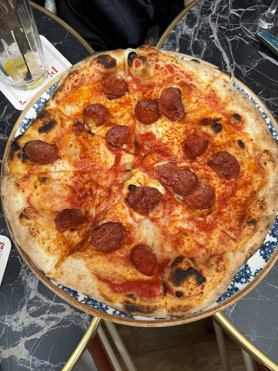 I went in after stopping at a fast food place for my wife and kids, as I could not fathom eating fast food for dinner for my first night in Paris. I was immediately greeted by the host who was super friendly and guided me through the menu. It took me a while to weigh my options and decide what to order. Shortly after deciding on the pepperoni pizza, a server came up to me and promptly took my order. I only waited roughly 10 minutes to receive. Overall it was delicious, though the crust was a little too thin for my own personal preference— but many people prefer thin crust so I will not hold this against them in my ratings. The sauce was light, and sweet, and both the pepperoni and cheese tasted high quality.