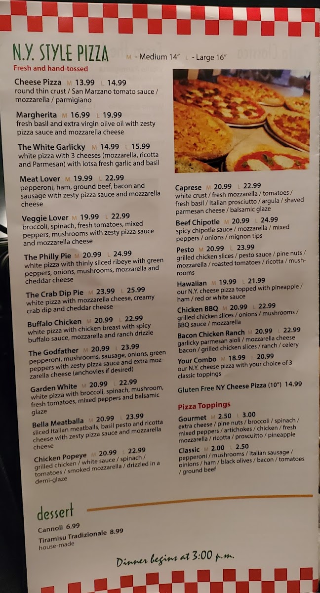 Out N.Y. Cheese pizza White’s your choice of 3 classic toppings.