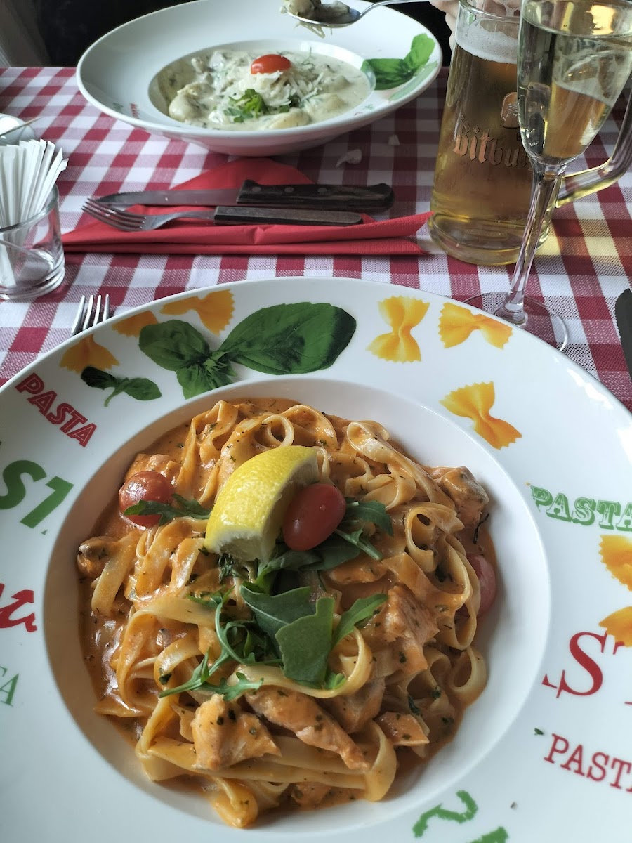 Essen war sehr lecker. Wir hatten Schweibemedaillons in Grünen Pfeffer und Rahmsoße und Frutti di Mare. Wirklich super lecker und sehr schneller Service. Die Bedienung war super, wir wurden freundlich begrüßt und wurden sofort zu unserem Tisch gebracht. Alles ging super schnell und ohne Probleme. Das Lokal von innen sieht super aus, von außen kann man es nicht beurteilen, da es mitten in der Stadt liegt. Es ist sehr sauber und das Besteck ist scharf und glänzend. Die Bildgebung des Gerichts ist super, jedoch sieht es nicht nur toll aus, es schmeckt auch so. Im allgemeinen ist das Lokal ein super Platz indem man mit Familie und Freunden einen schönen Nachmittag oder Abendessen genießen kann. Im Hintergrund läuft leise Musik. Dies gibt einem das Gefühl, dass man in Italien ist, da traditionelle Lieder laufen und sie perfekt zu der Stimmung im Lokal passen. 5/5 Sternen, da wirklich alles super war. Vielen Dank für das leckere Essen und das nette willkommen.