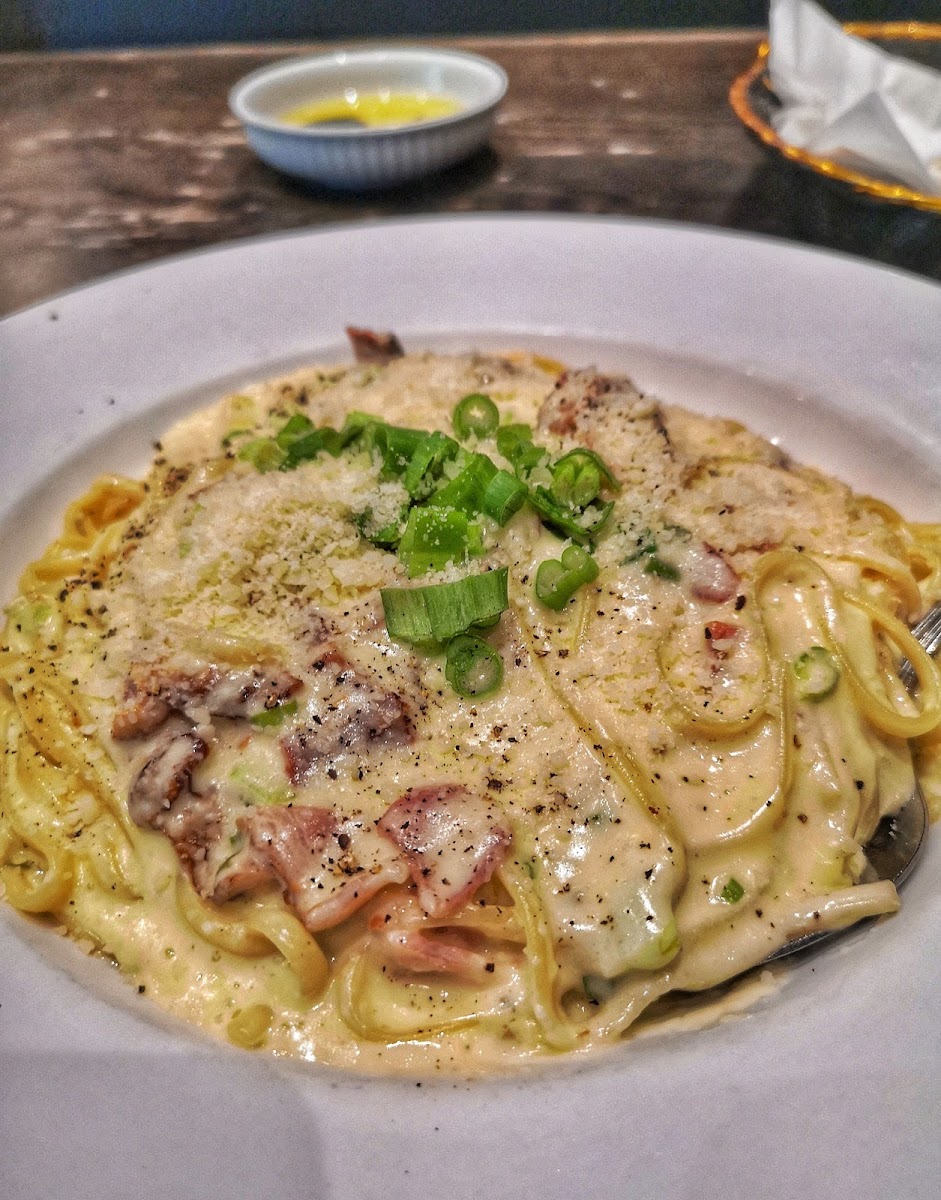 Good place to try for a variety of Italian dishes. The quality of the food is amazing. Carbonara, though, felt like a soup instead of pasta. It had way too much of the sauce. It was very loud when it got full, so it was impossible to speak to my wife. Did not like the environment. Service was great and welcoming. Prices are fair. Free parking available around the hotel.